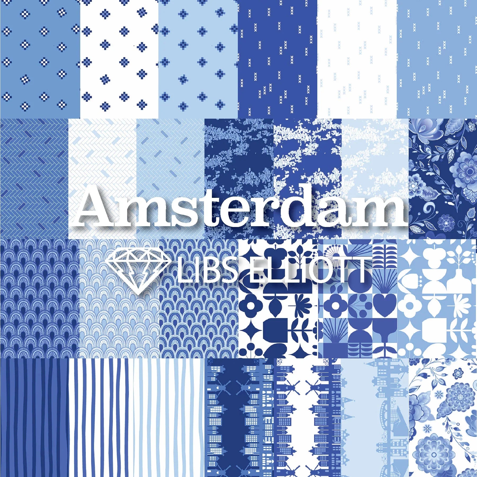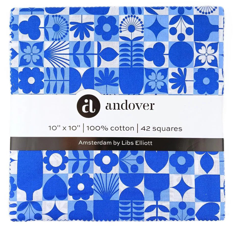 This 10" Stacker precut bundle includes 42 pieces from the Amsterdam collection by Libs Elliott. Each print will be included 2-3 times in the bundle.