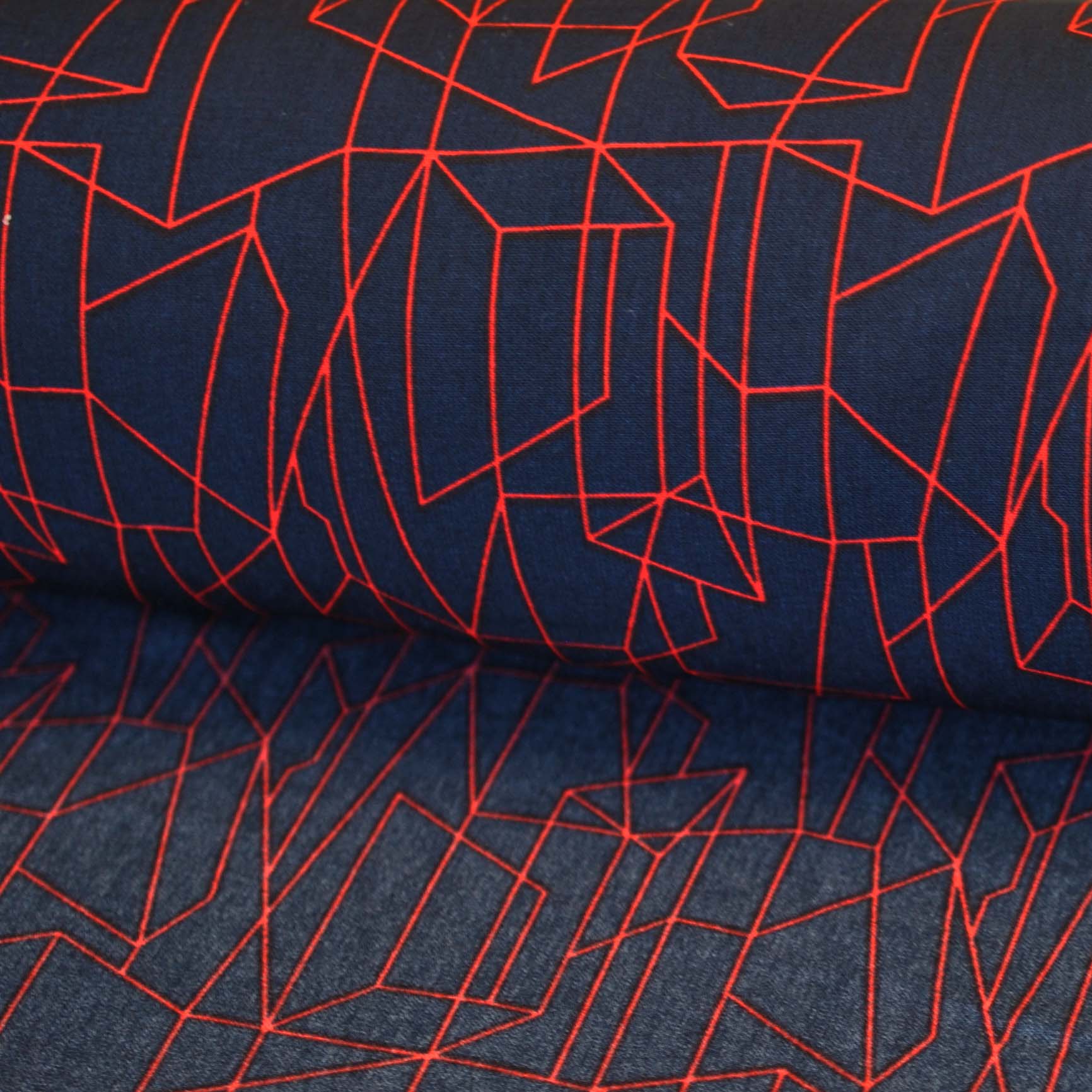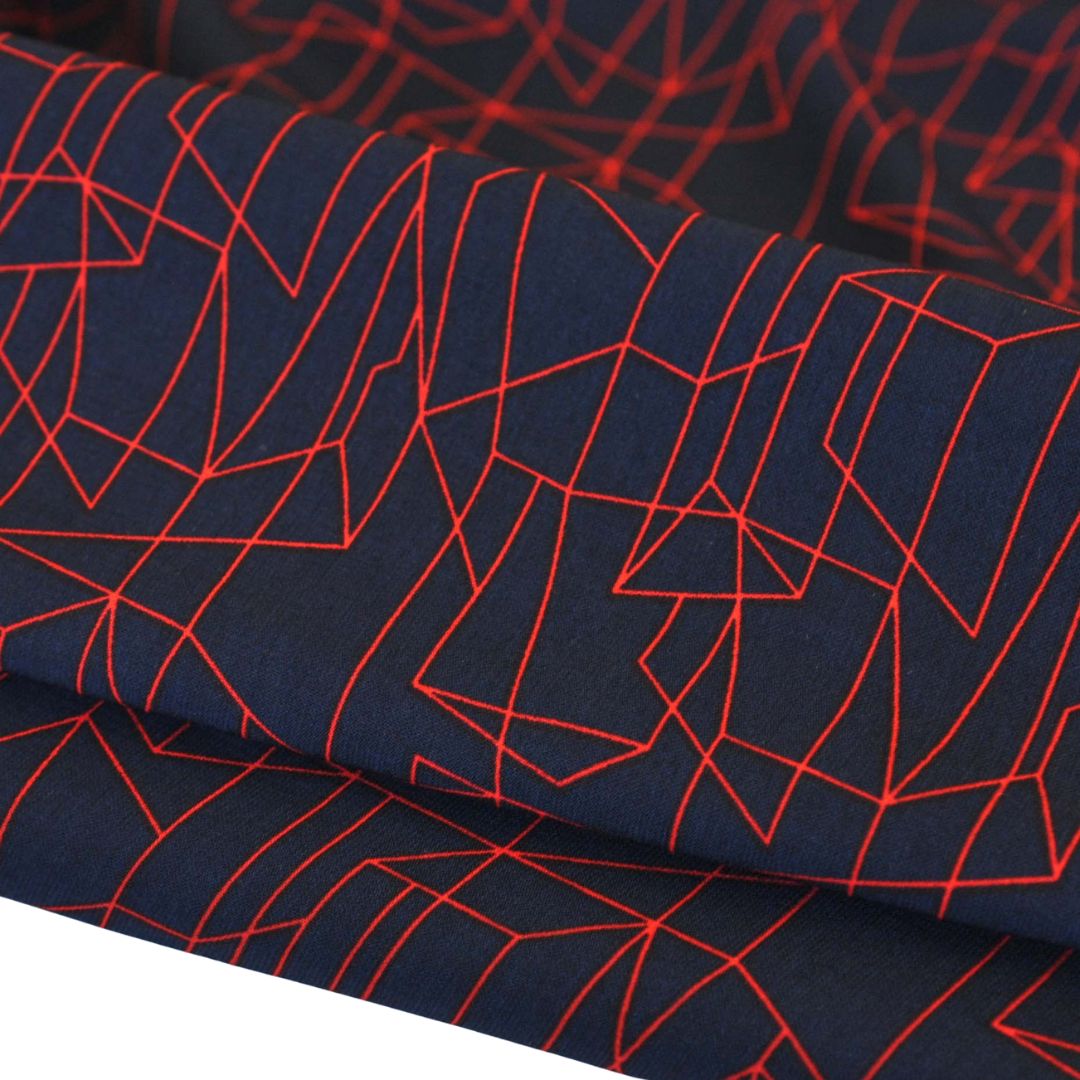 Deadstock Viscose Poplin Geometric Grid in Navy