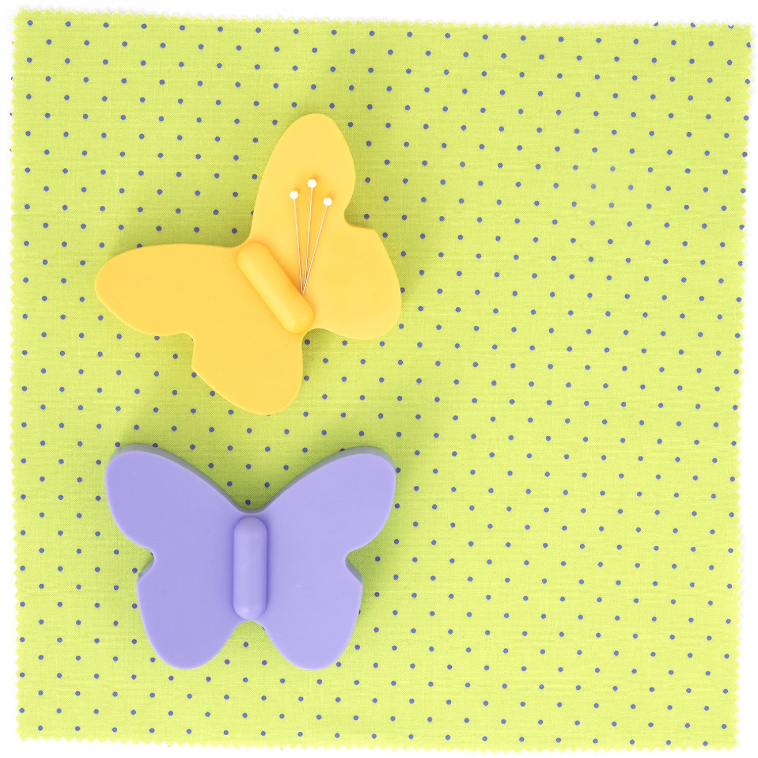 Add a pop of color to your assortment with the butterfly-shaped pin and needle magnet. Use to keep pins, needles and other metal notions securely in place and close at hand. Designed with upward sloping wings for easy pin pickup.