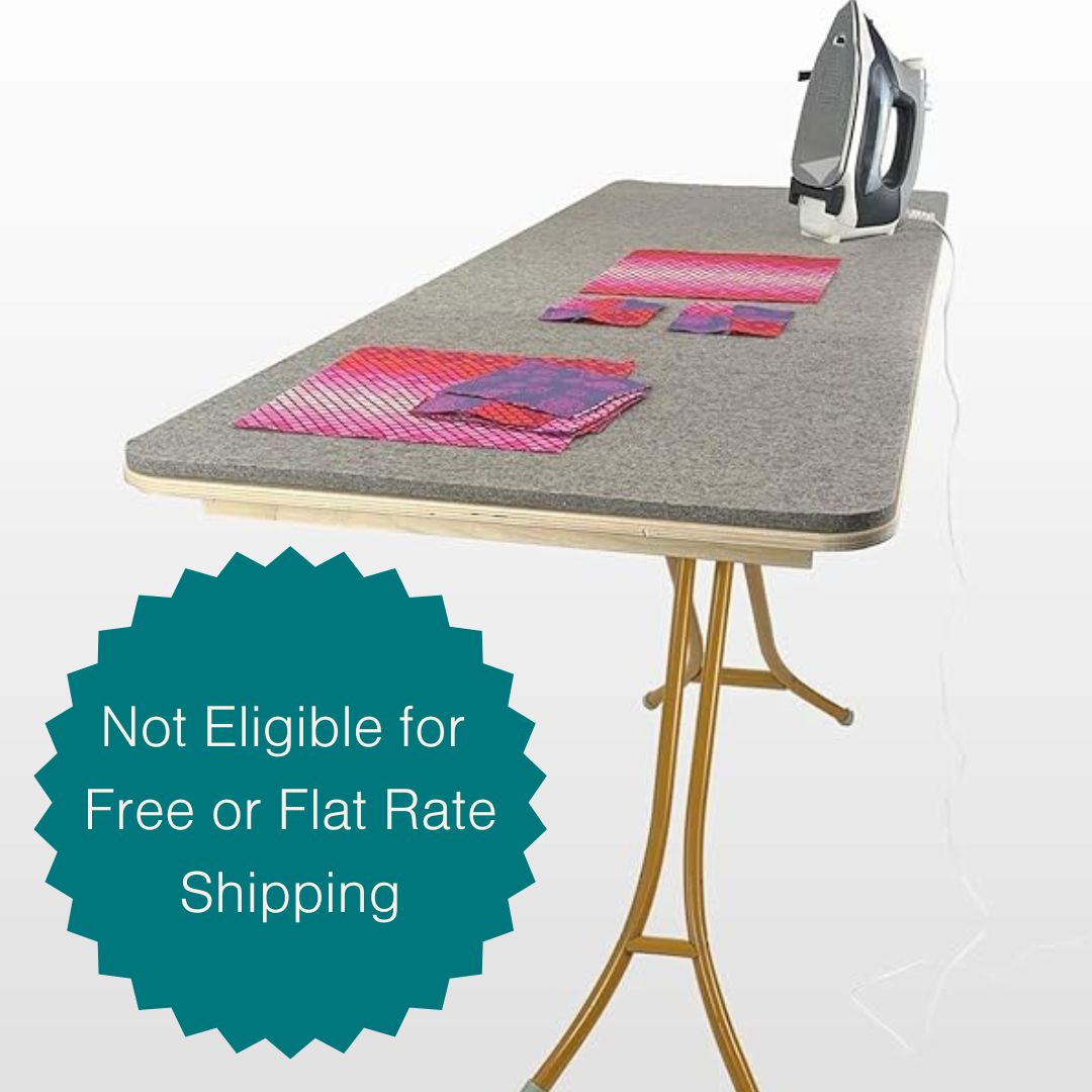The pressing mat can be used with a dry iron on any surface. If using steam, place the mat on a protected surface since moisture does go through the mat and can harm the surface below.
