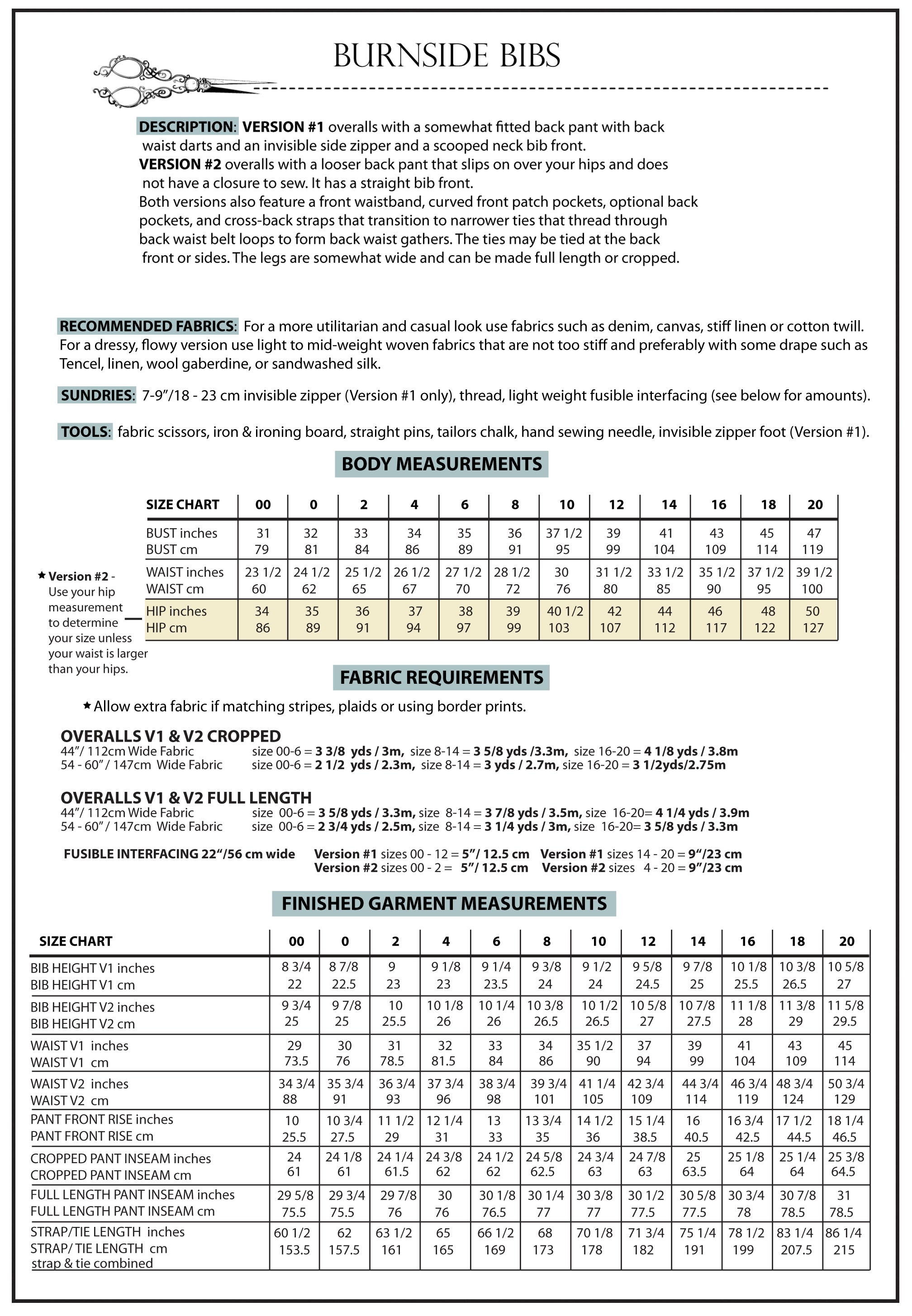 The Burnside Bibs have two front bib options - a scooped neck or the traditional straight front. Both bibs work with either version #1 or version #2.