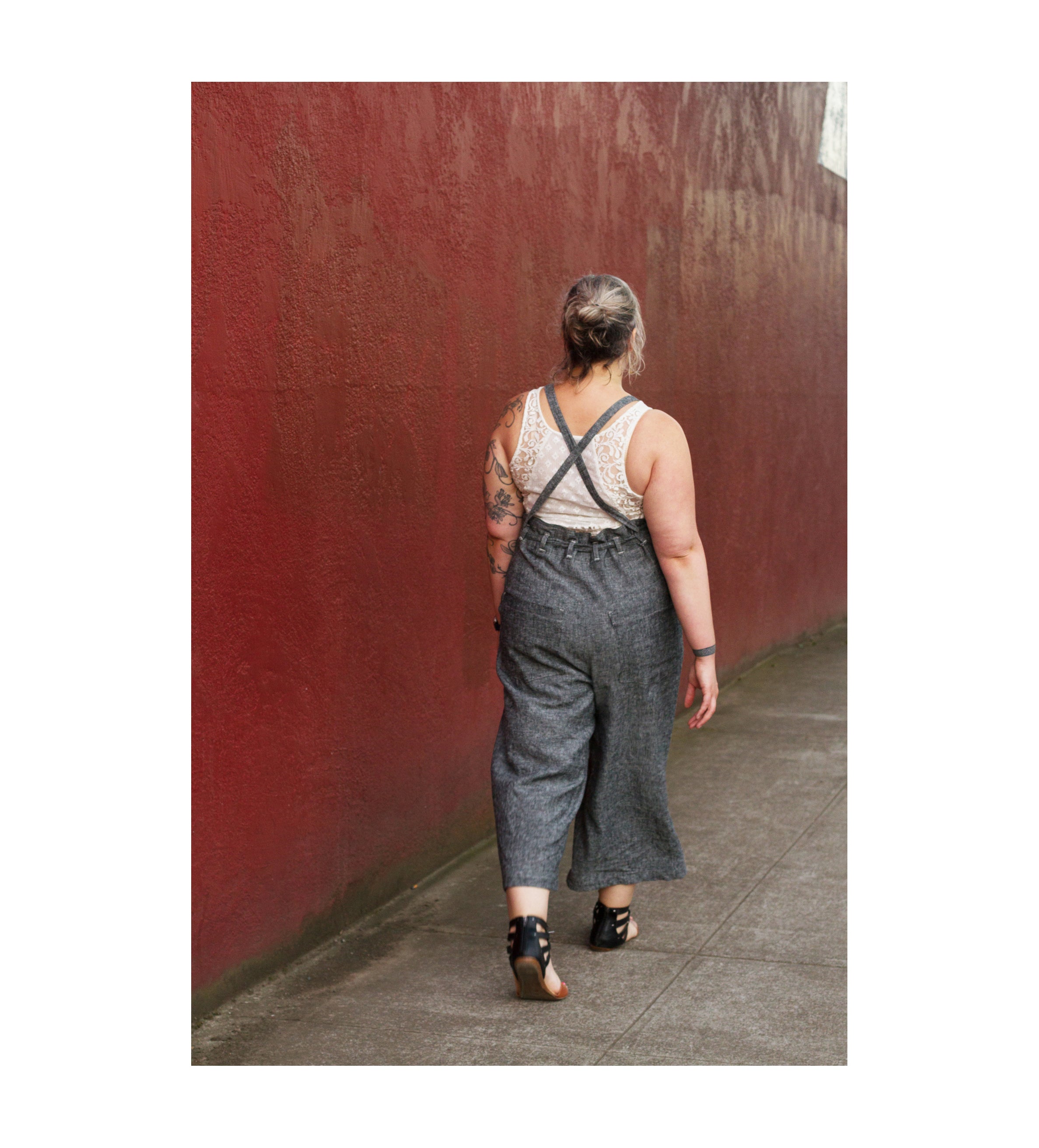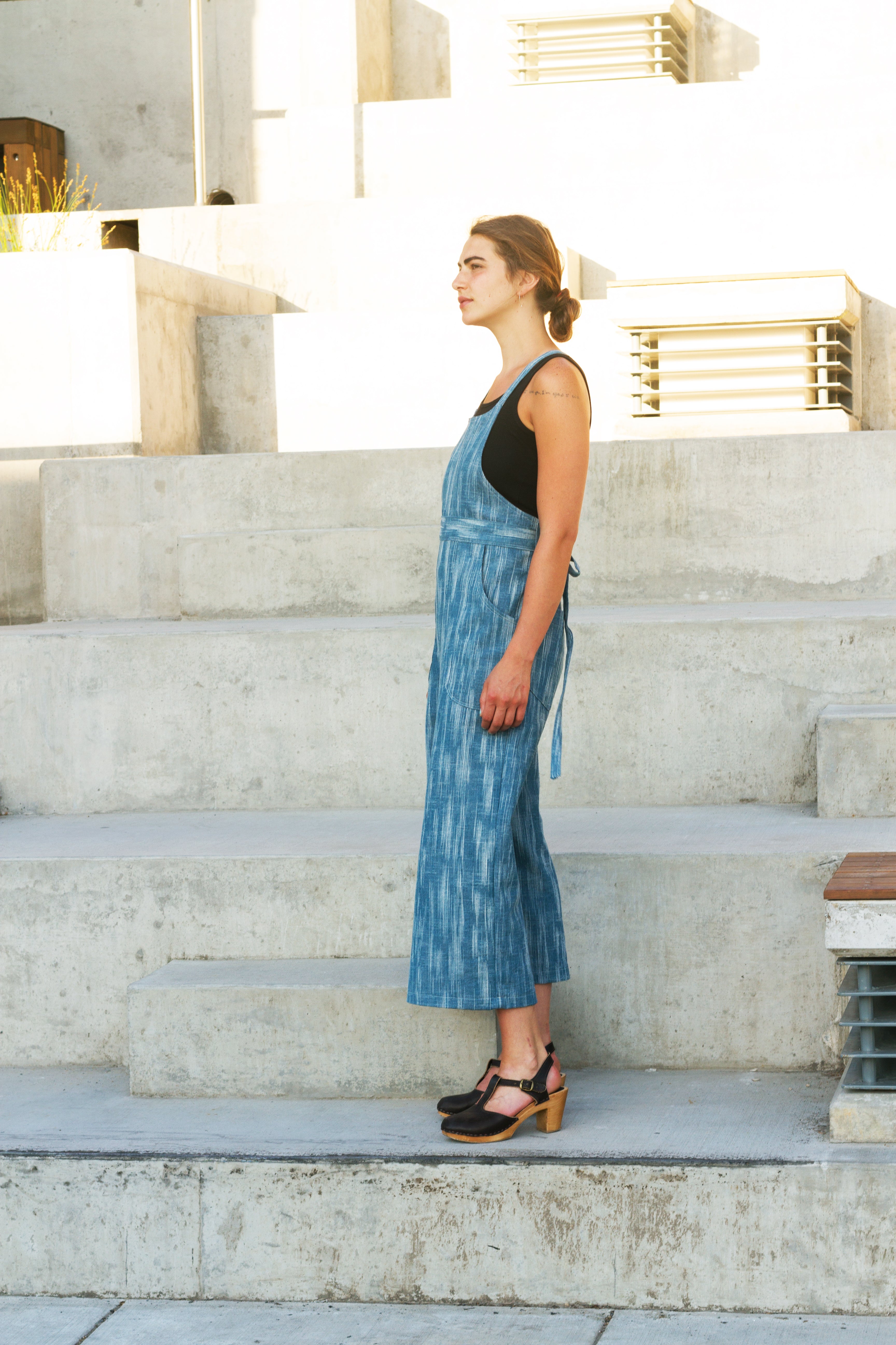 The Burnside Bibs are not your traditional work overalls. Yes they are comfortable and easy to wear, yet they are much more stylish and feminine than traditional versions. The straps that transition to narrower ties offer many options for how they can be tied. And...like so many sewing patterns, we as sewists are able to influence how casual or dressed up they become simply by fabric choice. Choose a fabric with some drape such as Tencel and pair them with a silk blouse and some heels for a dressed up look. Use a more traditional denim or linen and wear them with a tee shirt, sneakers or clogs and take a more casual approach.