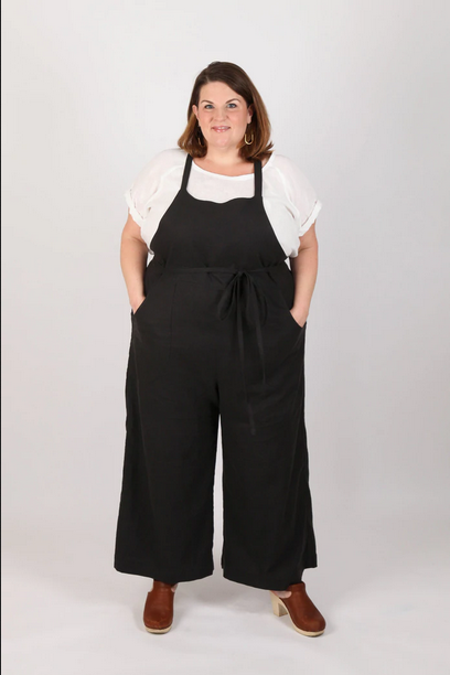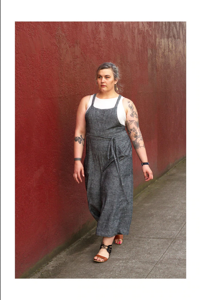The Burnside Bibs are not your traditional work overalls. Yes they are comfortable and easy to wear, yet they are much more stylish and feminine than traditional versions. The straps that transition to narrower ties offer many options for how they can be tied. And...like so many sewing patterns, we as sewists are able to influence how casual or dressed up they become simply by fabric choice. Choose a fabric with some drape such as Tencel and pair them with a silk blouse and some heels for a dressed up look. Use a more traditional denim or linen and wear them with a tee shirt, sneakers or clogs and take a more casual approach.