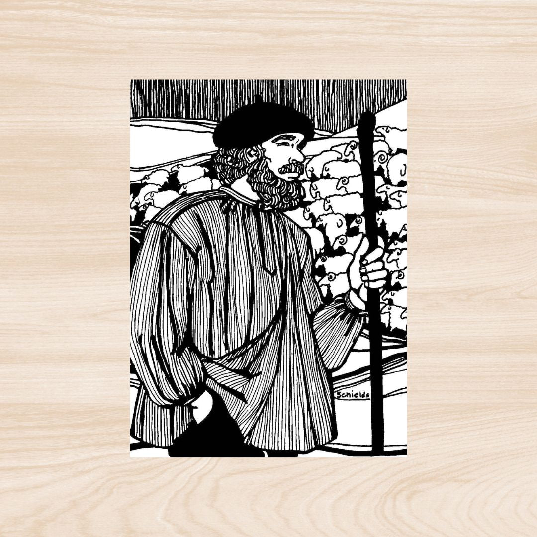 This roomy pullover style shirt is traditional garb for cheesemakers in Roquefort, France, and a comfortable smock for your studio or daily outings. It is a popular sewing pattern choice for Medieval and Renaissance reenactors, as well as for making an everyday tunic-style shirt. Sized for men and women, the easy-sew smock features shoulder yoke, front placket, simple narrow buttoned neckband, and optional underarm gussets. Sleeves are gathered at the wrist into a buttoned band cuff. Includes multi-sized tissue pattern and sewing instructions. Suggested fabrics: Crisp medium-weight fabrics such as gingham, broadcloth, muslin, linen, silk, lightweight corduroy. Traditional smocks have small blue and white checks. Yardage chart (.pdf) This is the paper pattern. For the PDF version, go here. Learn More: * For information about how to size this garment up, visit our blog post on how to add width and length to this pattern.