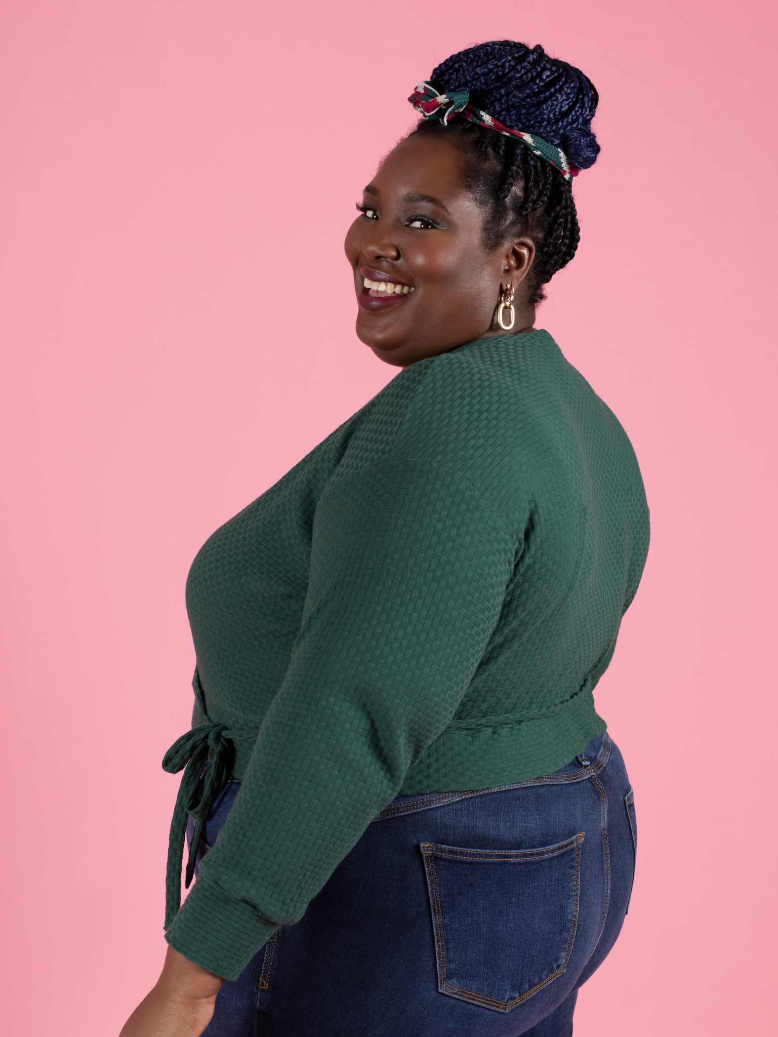 FABRIC SUGGESTIONS - Medium-weight drapey knit fabrics with at least 20% stretch, such as Hacci knit, sweater knit, jacquard knit, stretch velvet, ponte, interlock, lighter weight French terry.