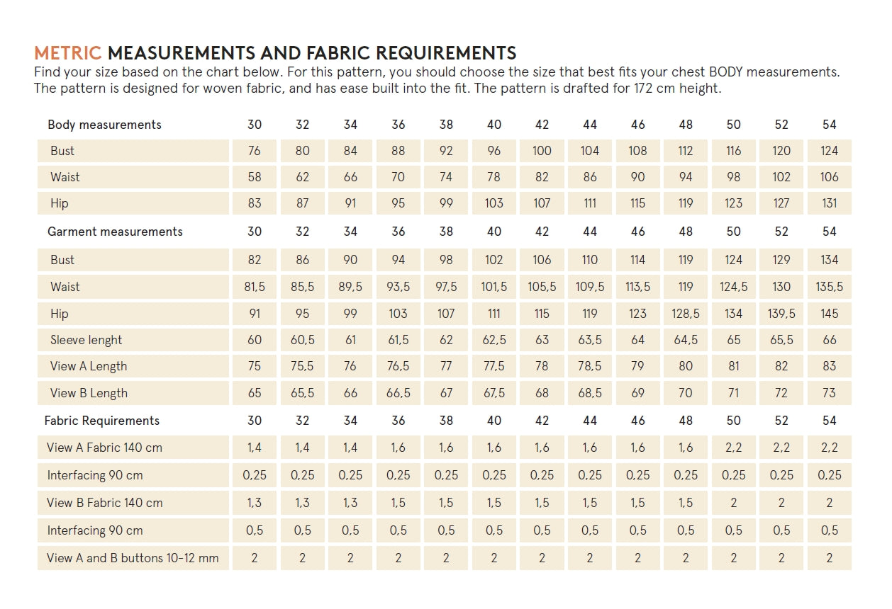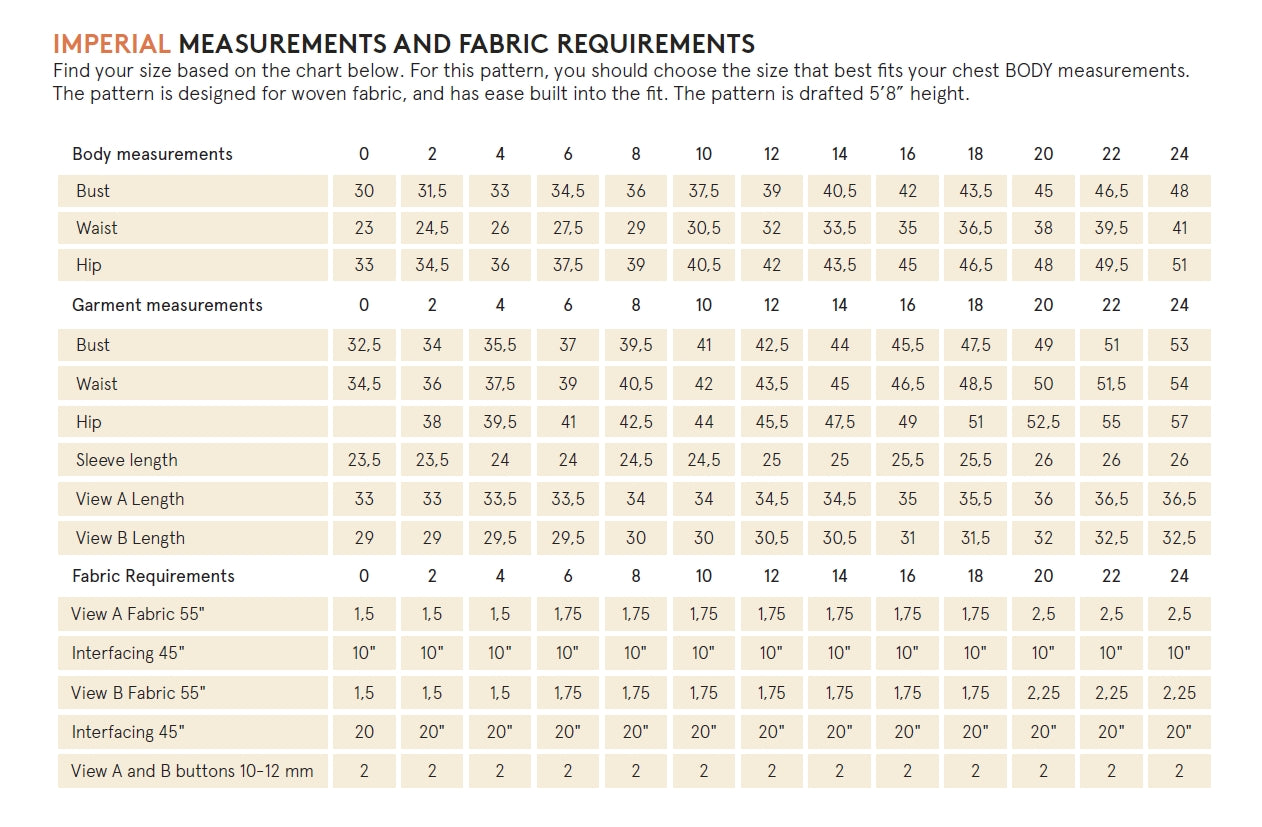 Flip through the images to find fabric requirements and measurements of the Perfect Tunic sewing pattern.