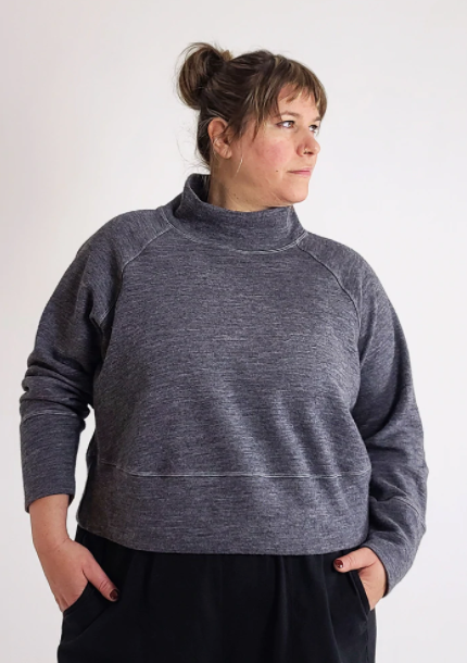 The Toaster Sweaters consist of two different high neck top designs to keep you toasty warm and stylish in the cooler months. They are both very simple to sew and perfect for sewists of all levels who want to try their hand at sewing knits. These sweaters are designed to be constructed using knit fabric with at least 20% stretch around the width of the body.