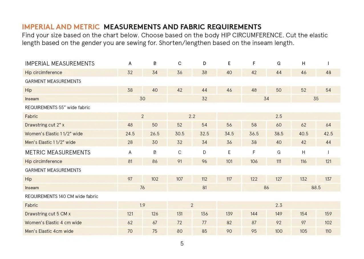 A simple pair of Pajama pants PDF Sewing Pattern, with elastic and pull string in the waist casing.