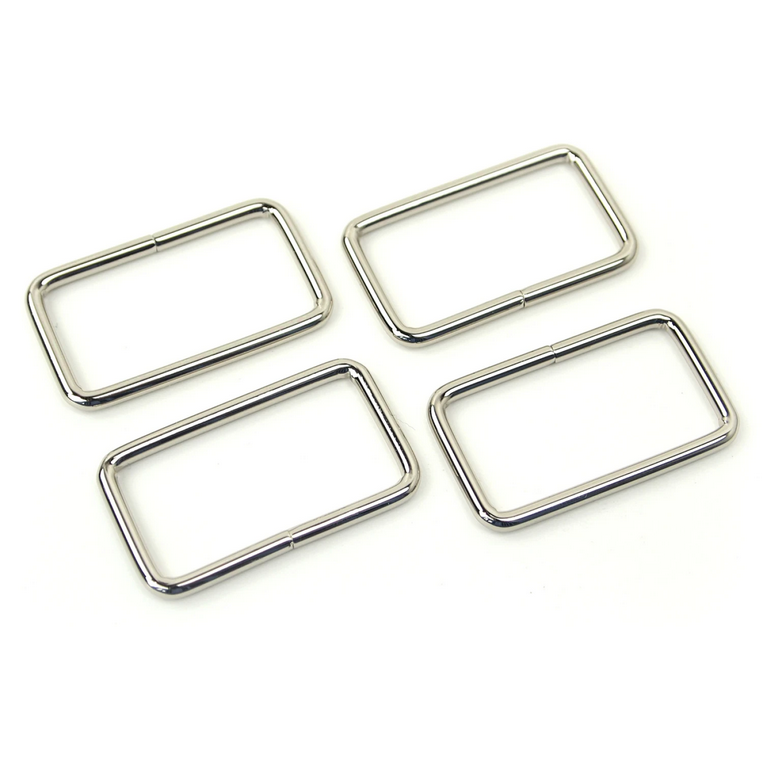 Rectangle rings are functional and add a bit of bling to your handmade bags. You can attach Rectangle Rings to your straps and handles to give them more mobility. You can pair rectangle rings with our coordinating Swivel Hooks and Slider Buckles for a professional look. Four per package.