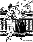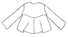 This Blouse reflects the military styling of World War I uniforms, as well as the new interest in comfortable and practical two-piece garments. The easy-sew blouse features a breezy, loose fit; slightly belled sleeves; flared hemline with gentle downward curve at center back; V-neck and sailor collar.