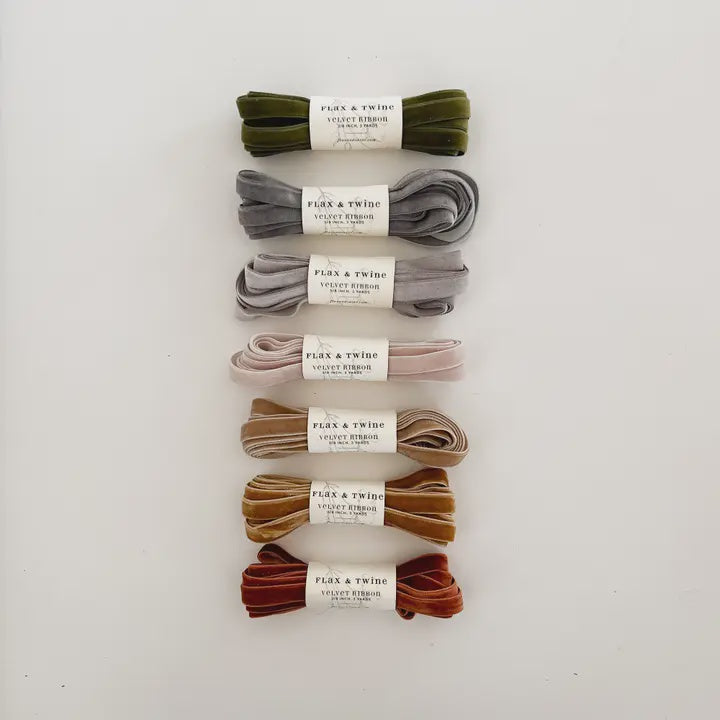 We love this versatile velvet ribbon in a beautiful neutral palate. Lovely for embellishing gifts, tying bows or weaving with. We think you're going to love it. Velvet ribbon is 1-sided and made of polyester.