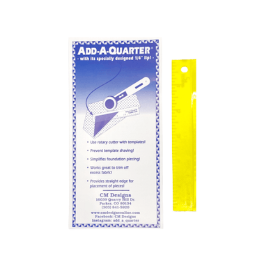 The specially designed lip on this ruler automatically allows 1/4 inch seam allowance to any angle for your rotary cutter.