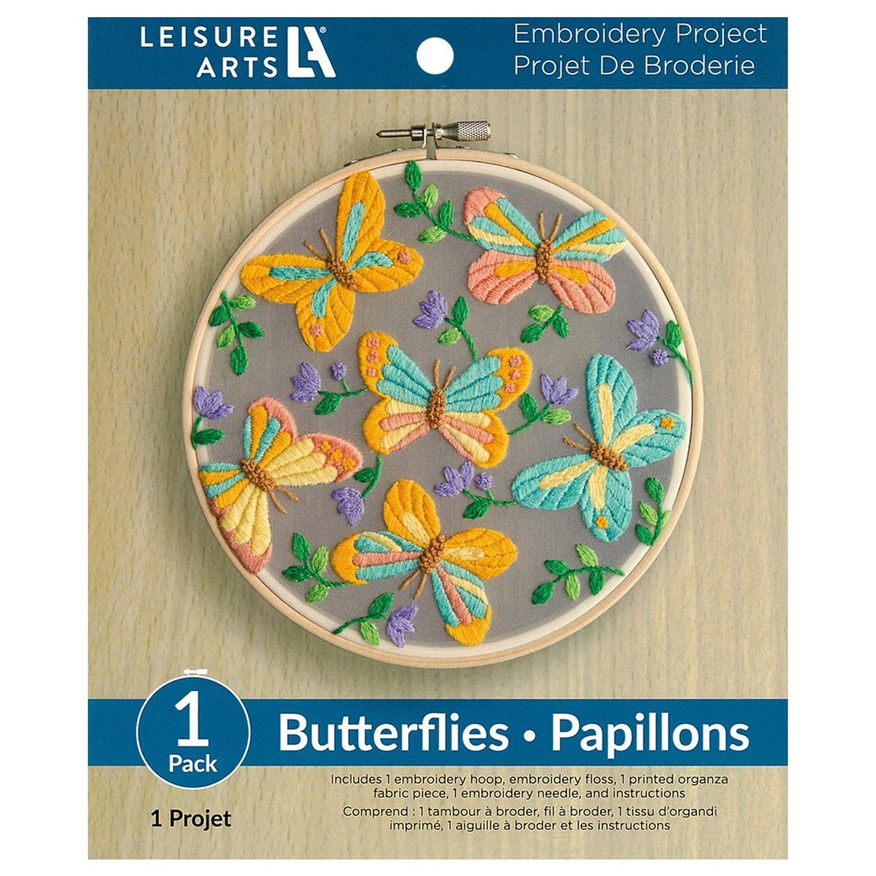 Includes 6" wooden embroidery hoop, embroidery floss, printed fabric, embroidery needle and full-color, step-by-step instructions.