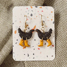 Cute + playful pair of earrings with hand-painted details! Who can be mad while wearing chickens in rain boots?
