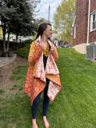 Cozy Cascade is a fantastic way to wear your quilts! This REVERSIBLE, long, open front cardigan is super-cozy for the winter months and is a great way to showcase your favorite fabrics. This pattern is written by a quilter for quilters, so if you are not sure of garment-sewing lingo, that’s OK — we’ll walk through it step-by-step in words and techniques that YOU are familiar with.