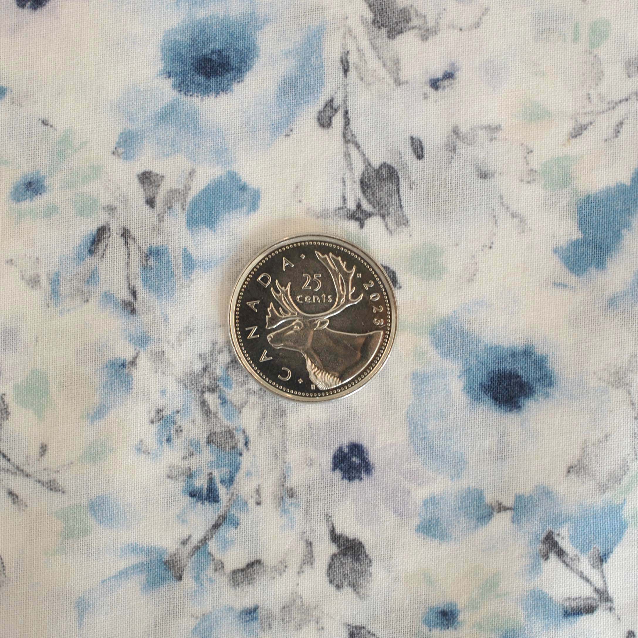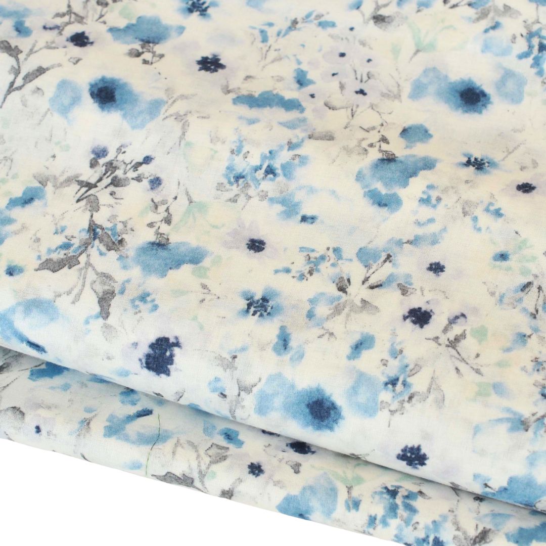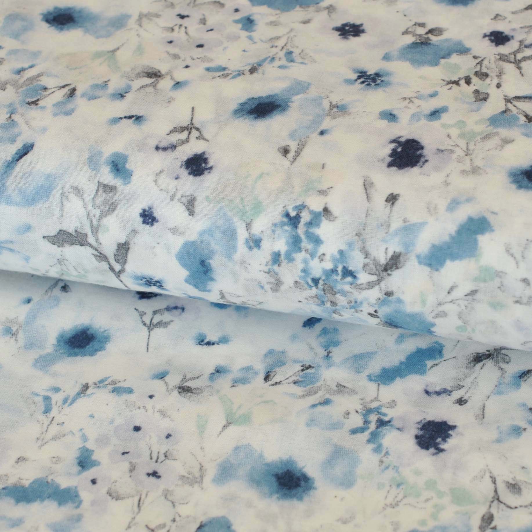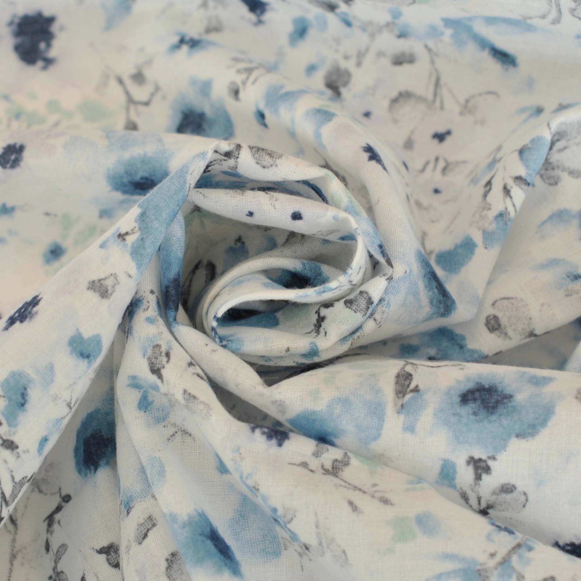 Flowny Watercolour Flowers Cotton Lawn in Blue and White