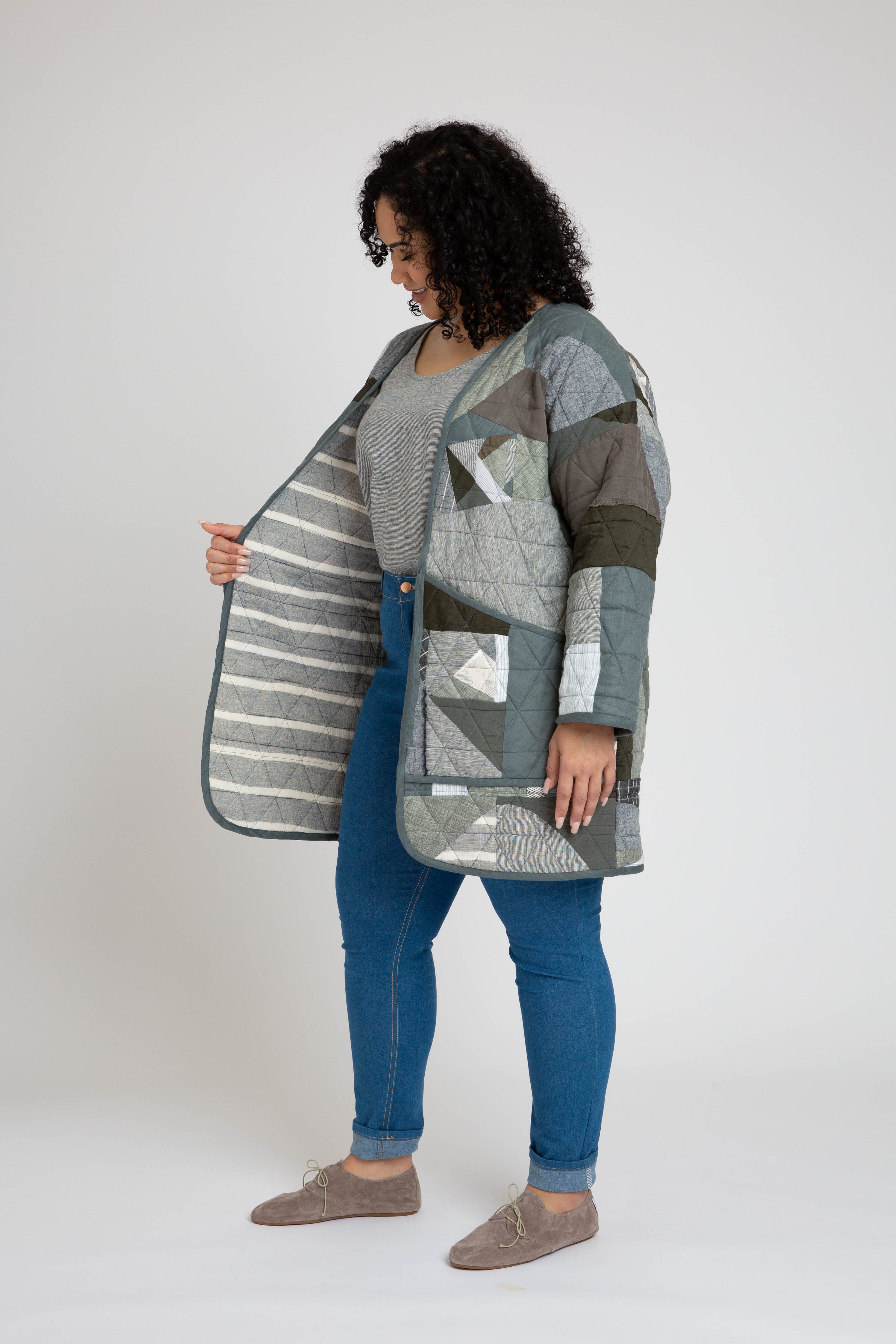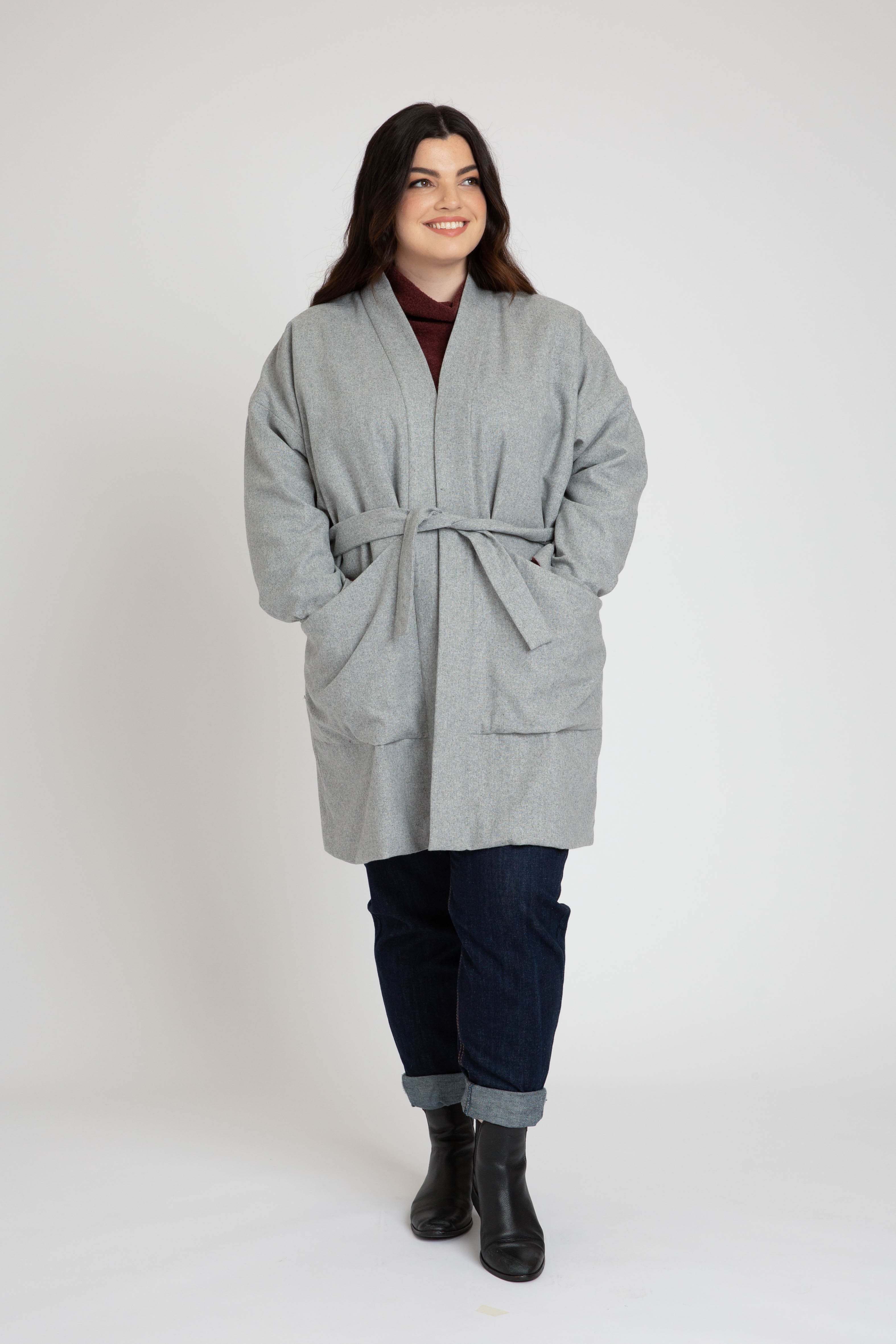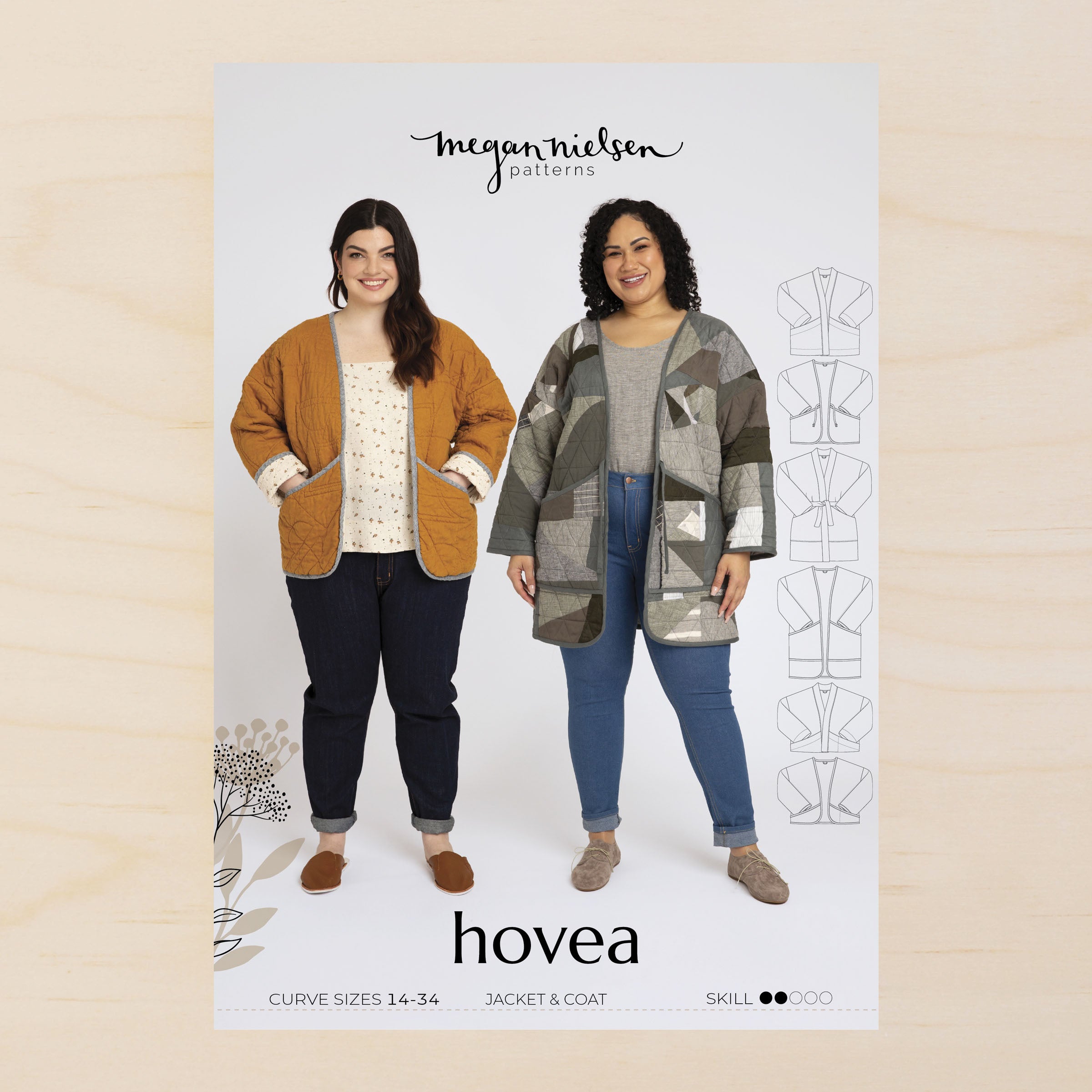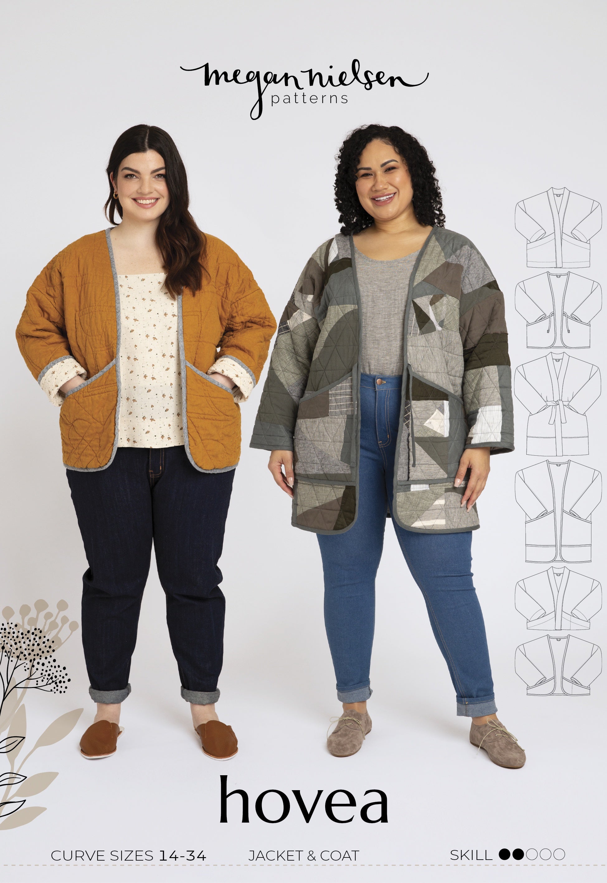 Hovea is a loose fit drop shoulder jacket & coat. Pattern features multiple lengths; deep angled feature pockets; unlined, full lining or quilted options; and belt or tie closures.