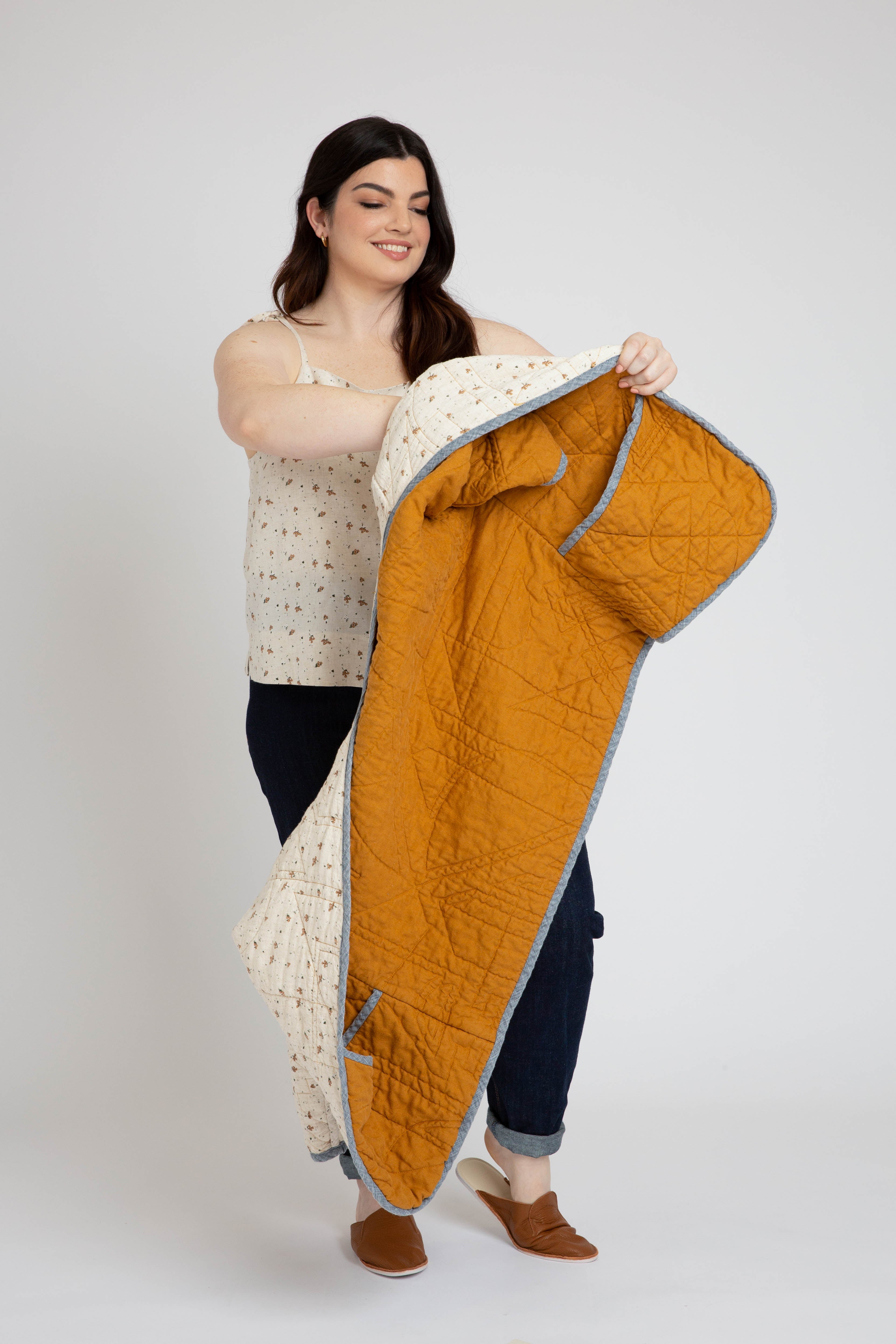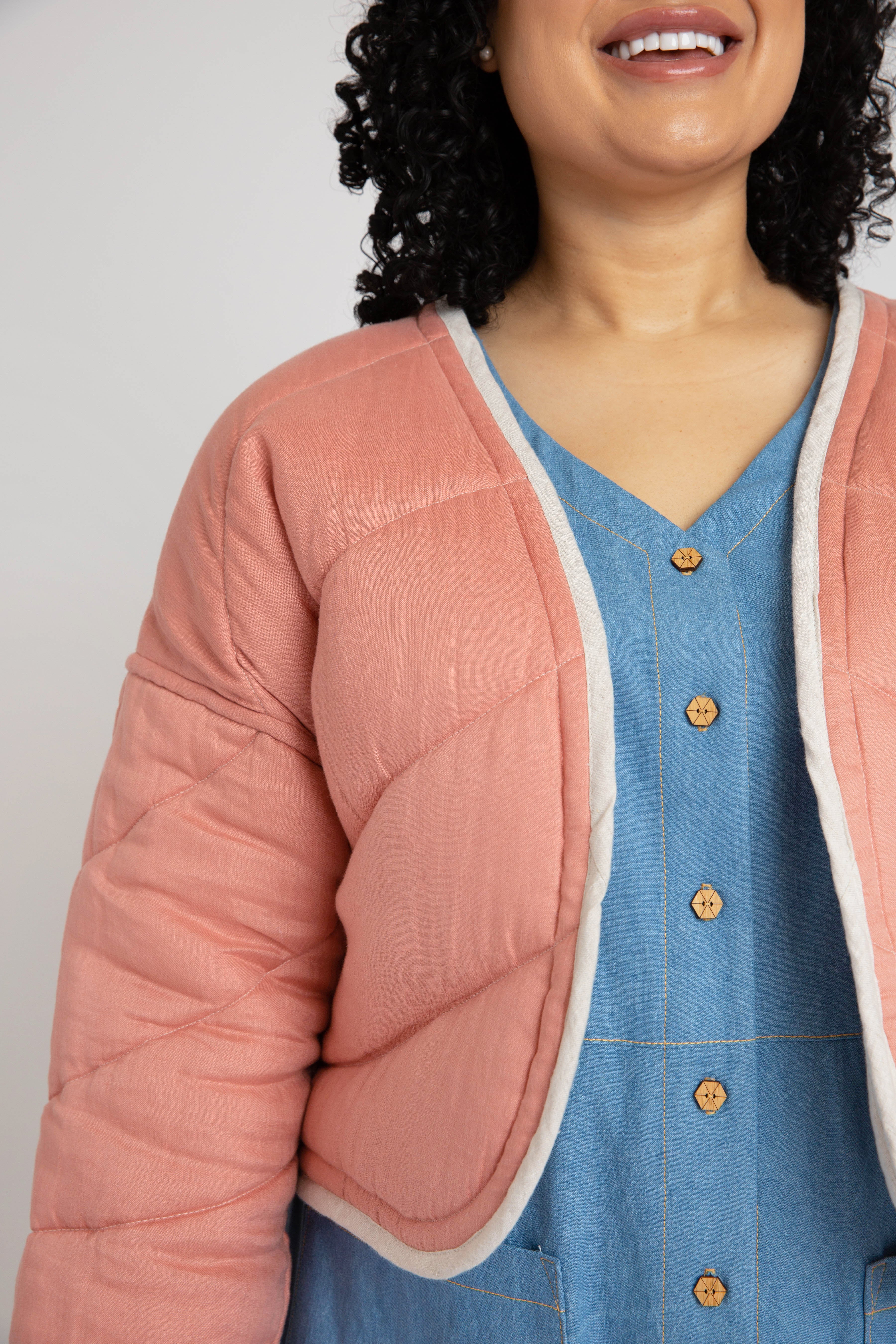 Recommended fabrics: Light to medium weight fabrics such as cotton, linen, chambray, blends etc are recommended for the quilted versions B, D & F. Avoid thick fabrics or these versions can become too bulky.