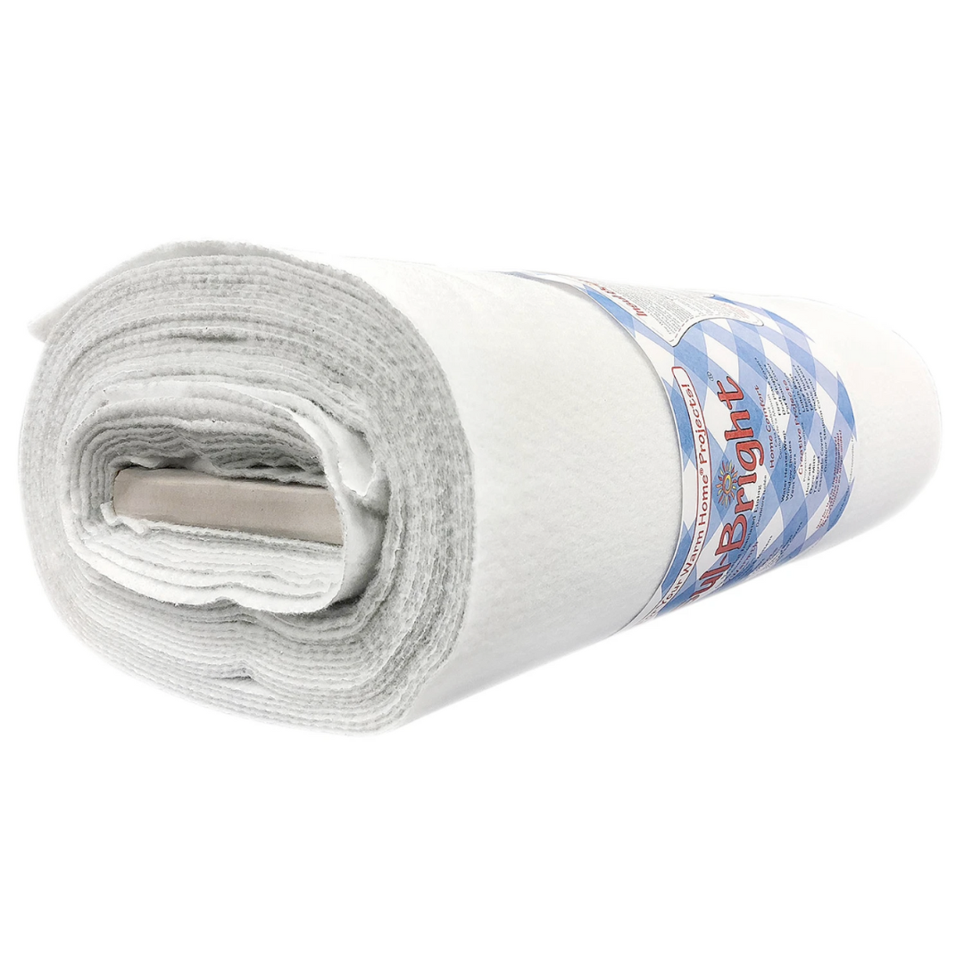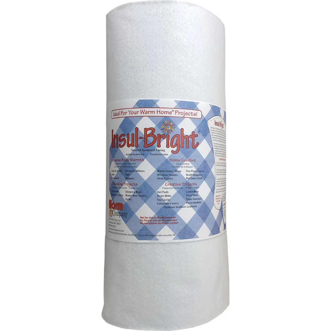 Insul-Bright is a needle-punched, insulated material ideal for crafters. With today's focus shifting back to family and home, new and experienced sewers are choosing simple, practical projects for use in their homes and as gifts. Pot holders, oven mitts and casserole covers are all ideal projects made functional and safe with Insul-Bright. It consists of polyester fibers, needle-punched through a reflective metalized polyester film. The needled material is breathable and won't break down with washing. The polyester fibers resist conduction while the reflective metalized polyester film reflects radiant energy, hot or cold, back to its source.