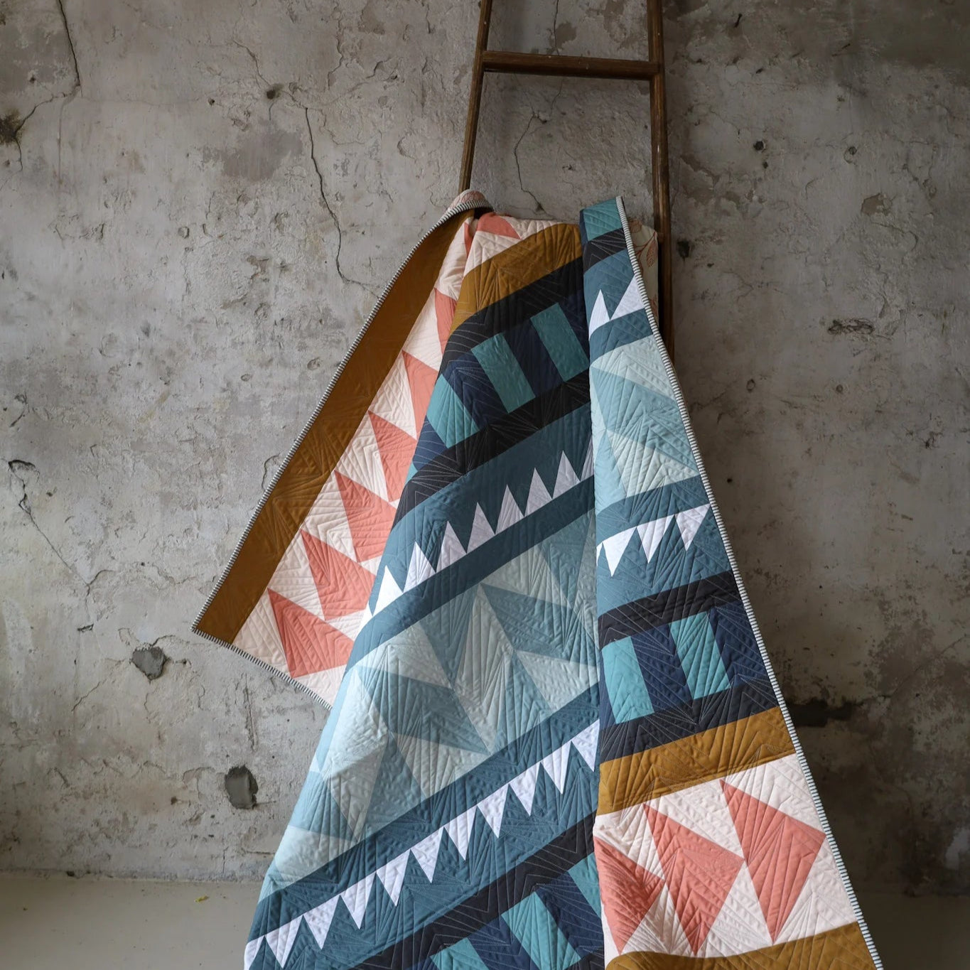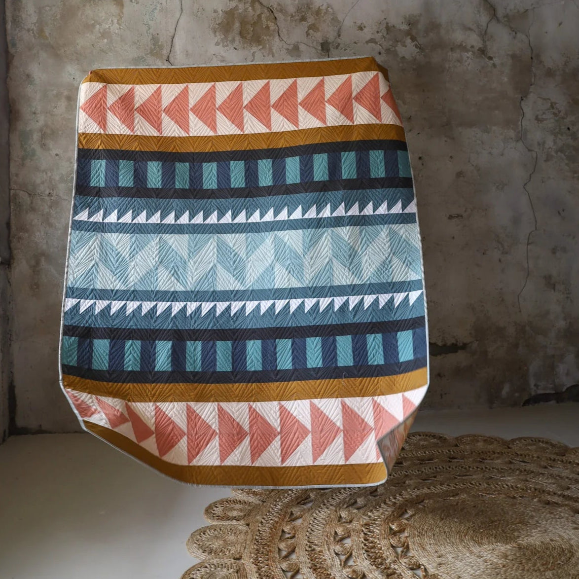 Granny Patch is a modern patchwork take on traditional crocheted "granny squares." This cozy, vintage inspired quilt is a mix and match style pattern and it uses strip piecing so that sewing blocks together is quick and fun! Choose from four sizes and use either yardage, half yards, quarter yards or fat quarters. It includes helpful diagrams, thorough instructions, alternate color-way and quilting ideas, and a coloring page to plan your quilt.