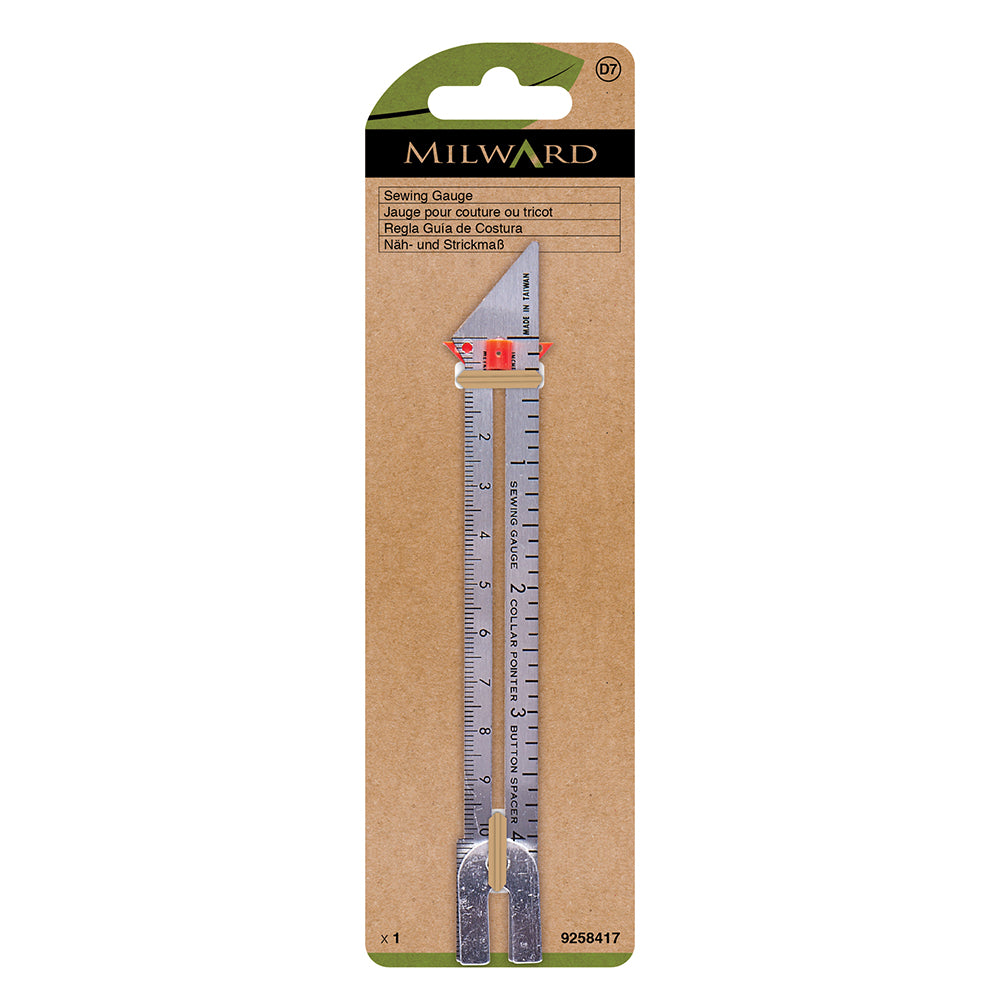 Use this gauge to accurately measure hems, pleats, buttonholes and more. Ideal for sewing and knitting projects, it incorporates a point turner to ease out collars or cuffs, and a button gauge to measure shank depth before sewing on.