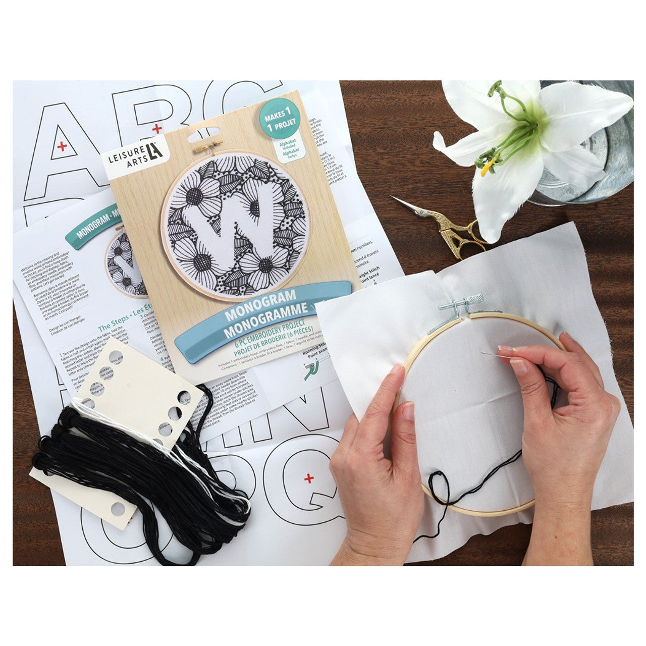 Includes 6" wooden embroidery hoop, embroidery floss, printed fabric, two embroidery needles and full-color, step-by-step instructions.