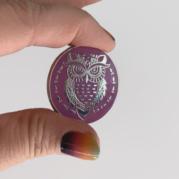 This Owl Needle minder is 1.25 inches round and made with the hard enamel technique. It comes packaged on a card and would also make a lovely gift for a stitchy friend.