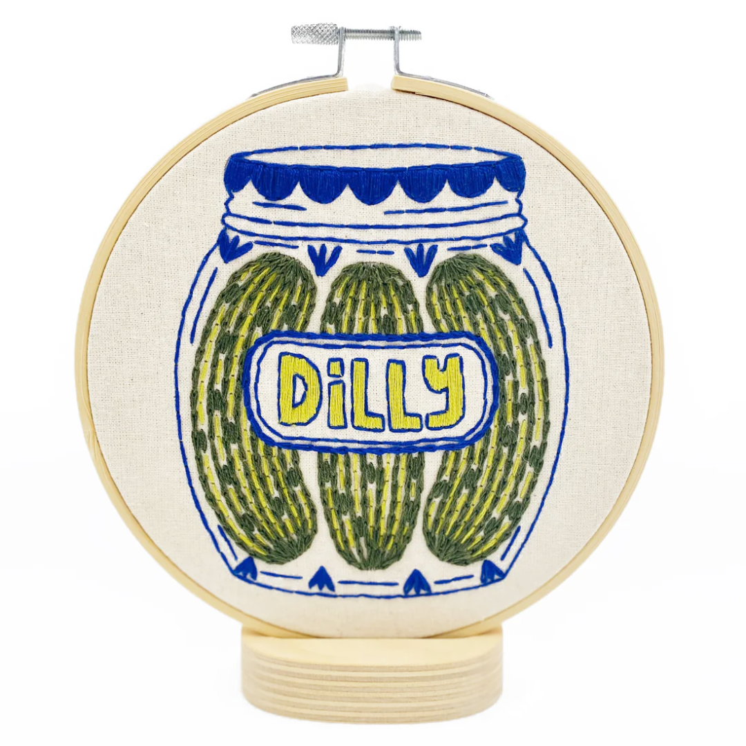 Calling all pickle girlies! Celebrate your love for pickles with this complete pickle embroidery kit! A simple array of stitches make this the perfect challenge for an embroidery beginner.