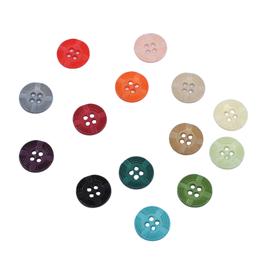 Ridged 4-Hole Buttons 13mm - Assorted Colours