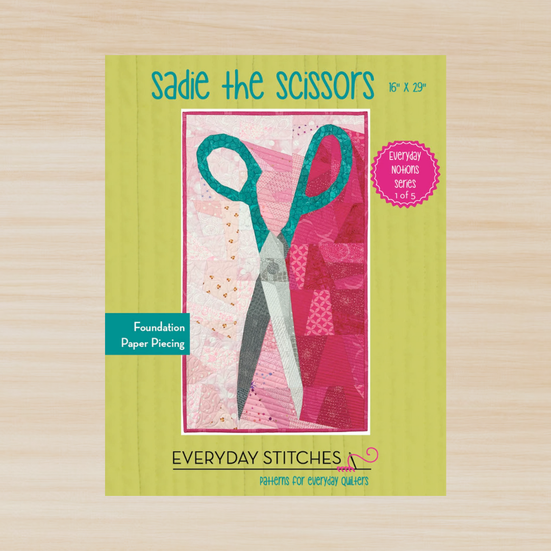 Scissors can really get overshadowed in this day of rotary cutting, but they still have an elegant line and sometimes you just need a pair of scissors to complete the task at hand. Honor your favorite pair of scissors with this 16” x 29” foundation paper-pieced wall hanging!