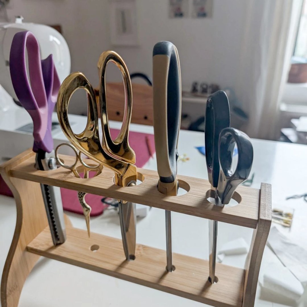 Tired of digging through drawers or cluttered baskets to find the right pair of shears? This Bamboo Desktop Scissor Stand is the elegant, functional solution every sewist and quilter needs.