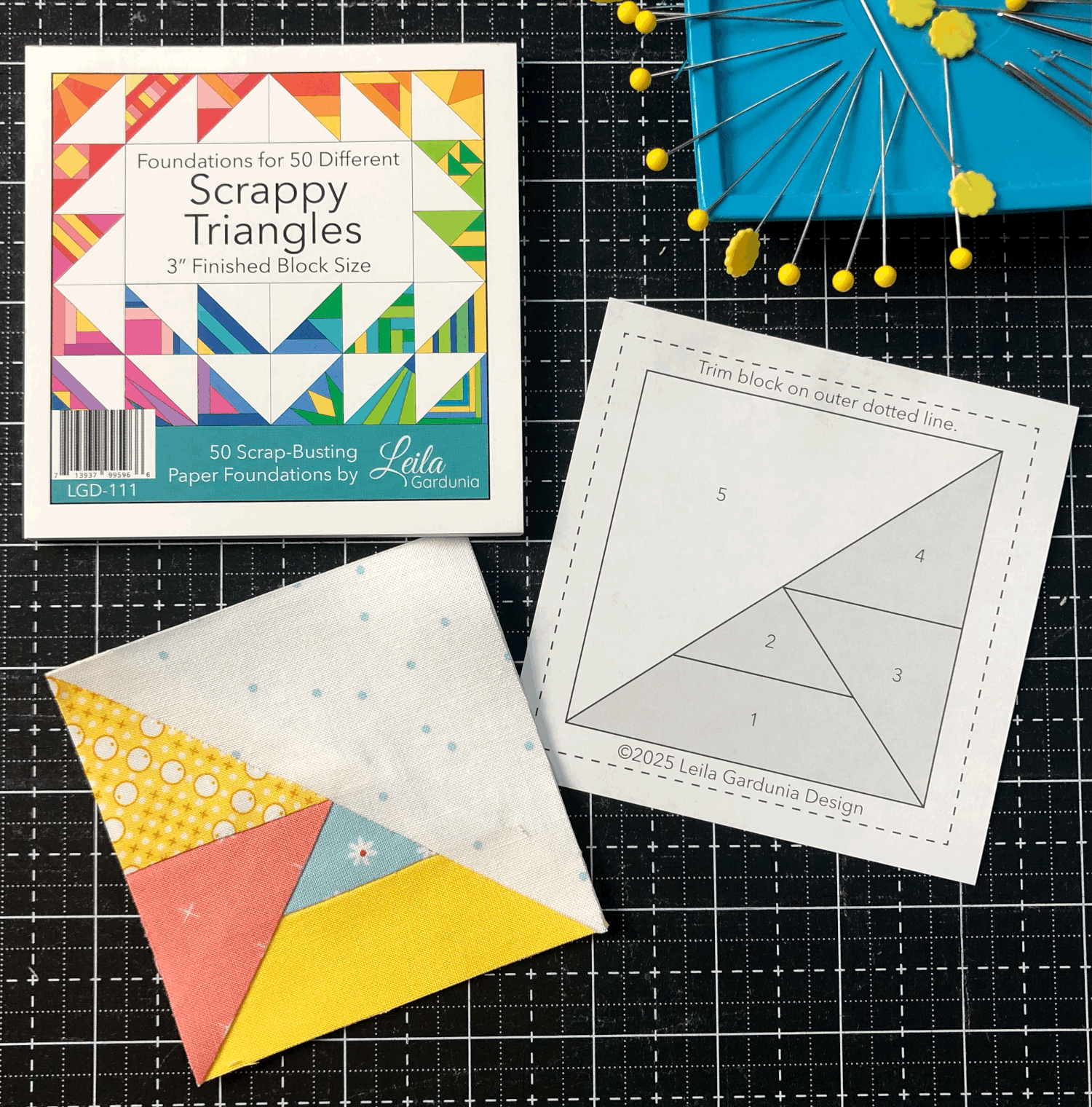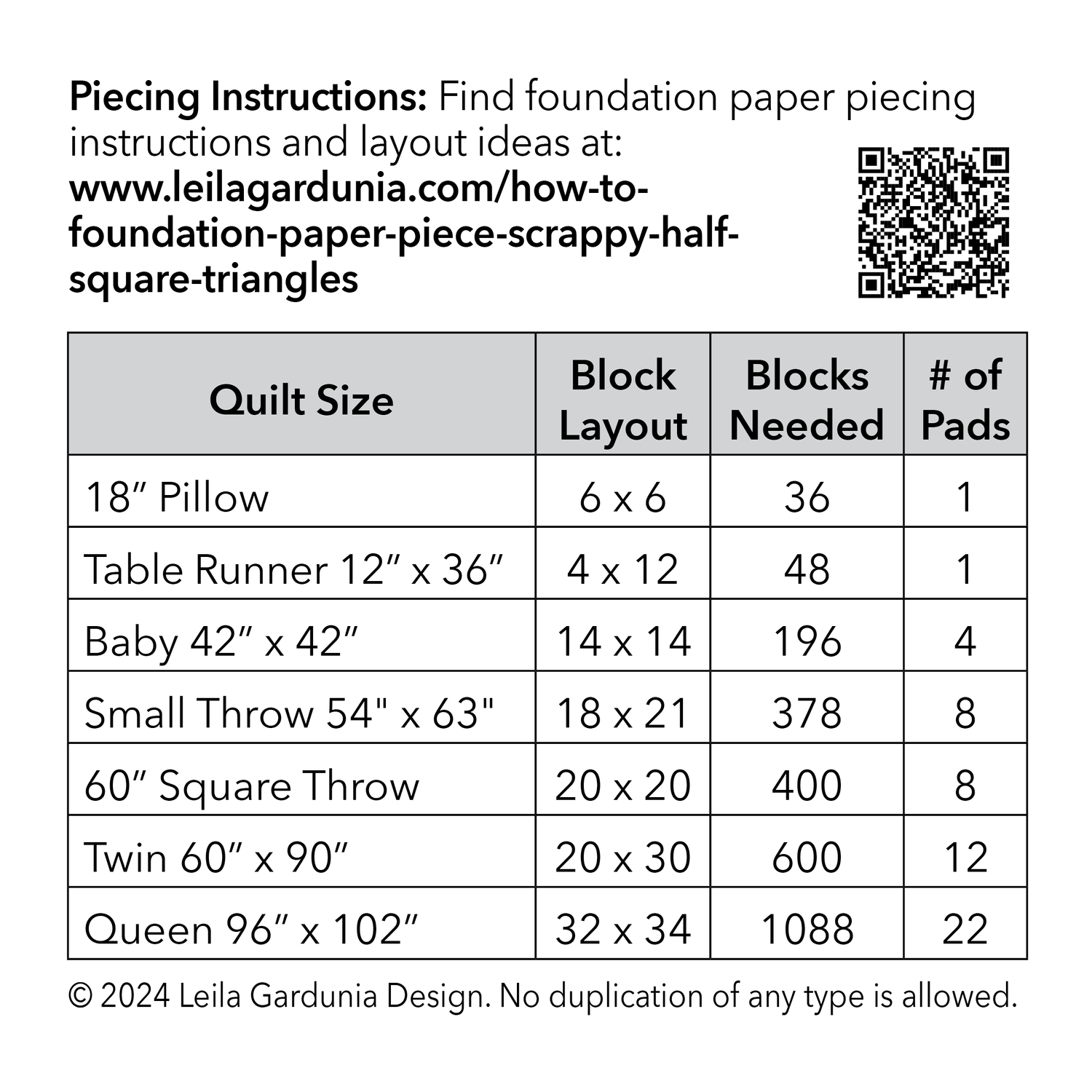- 50 different Scrappy Triangle foundations (the same designs as the 6” Scrappy Triangles)