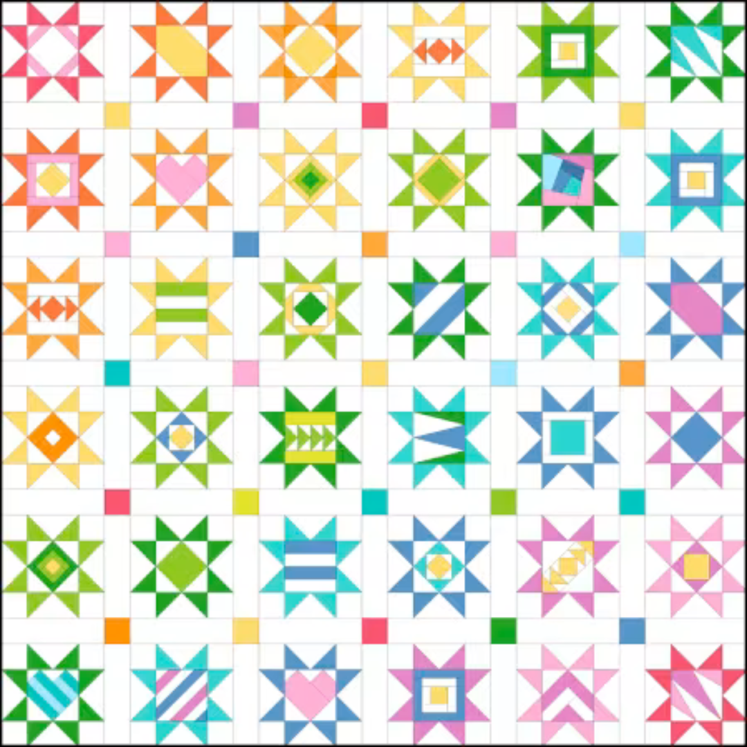 - A link to detailed written and video instructions on how to foundation paper piece and assemble the Scrappy Star blocks