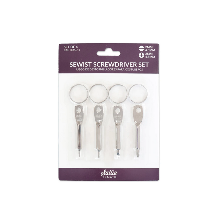 This versatile screwdriver set is an essential tool for any sewist. It includes 2mm and 4.5mm Phillips and flat heads, making it perfect for securing and adjusting bag hardware with ease. The flat heads are also ideal for changing sewing machine needles or swapping presser feet quickly and efficiently. Crafted with durability in mind, the ergonomic design ensures a comfortable grip and precise control, helping you create with confidence.
