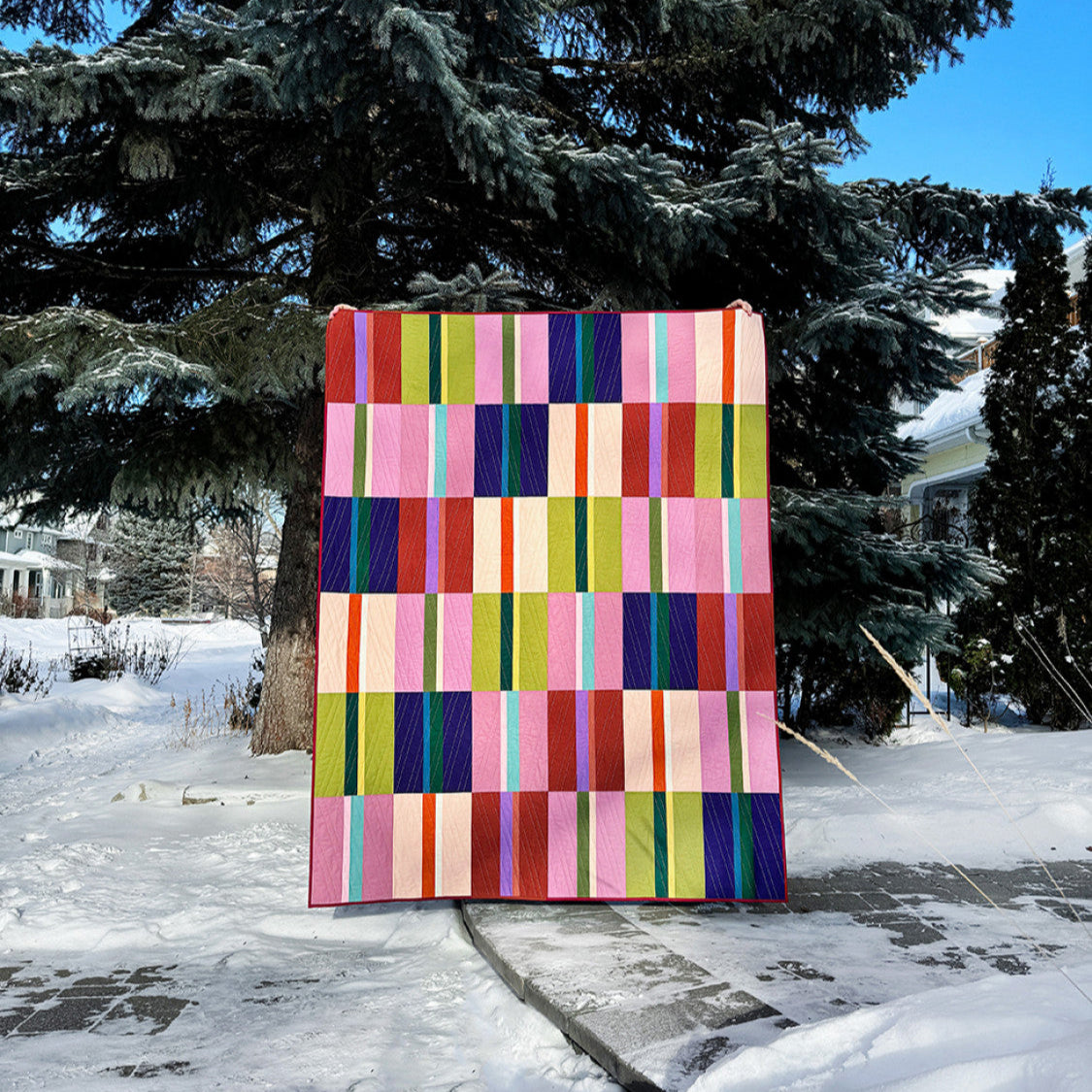 This modern, original quilt pattern is perfect for confident beginners! This unique, rectangular, block-based pattern features super-speedy strip piecing!