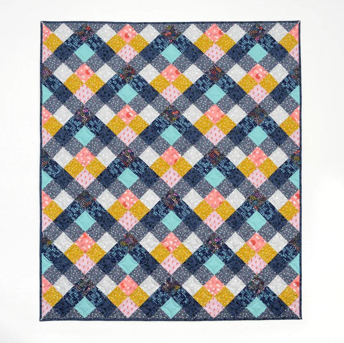 This fun updated take on the classic gingham/buffalo check pattern is a fast finish. It is a great weekend quilt pattern that has a modern finish. The pattern includes baby, throw and twin sizes.