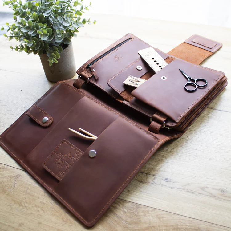 The Catch All Page is perfect for fitting any random crafting bits and bobs, from swatches to ball bands and skein tags, notions to notes! With a zipper pocket on top and a large snap pocket on the bottom, it's a simple & practical design created by one of Thread & Maple's customers Aimee Keithan. It folds closed with rotating snaps as a standalone case to take on the go, or can be neatly stored in the Needle Binder together with the rest of your needles.