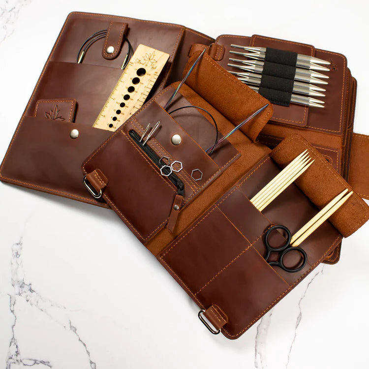 Handcrafted in Ukraine from soft, genuine leather, this binder is a beautiful and functional heirloom piece designed to keep your knitting tools organized for years to come.