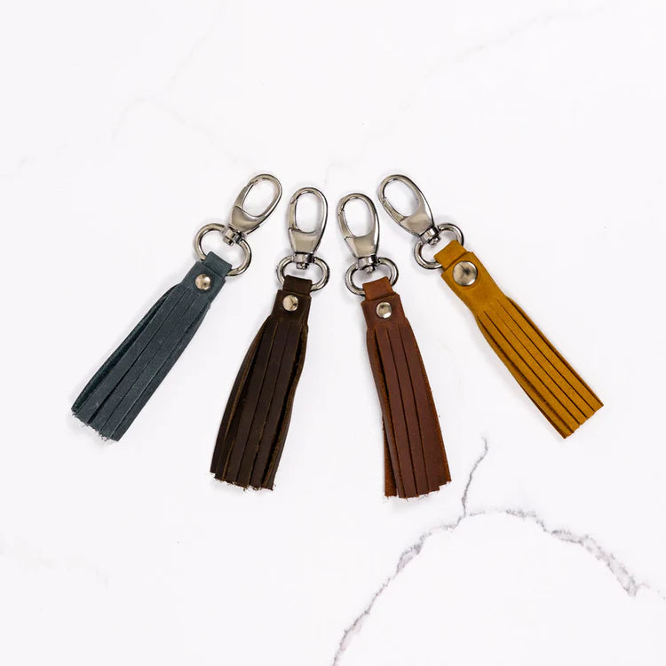 Add a touch of charm and personality to your favorite bag or pouch with these handcrafted leather tassels. Made from the same premium full-grain leather as our project bags, each tassel is carefully cut, rolled, and finished by hand. They measure approximately 7.5 cm (3") from end to end and feature a sturdy metal clasp to easily attach to your zipper pull, keyring, or bag strap. Available in coordinating colors to match our Leather Pochettes, they’re the perfect little accessory to complete your look—or to give as a thoughtful, stylish gift.
