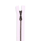 YKK #4.5 antique brass donut pull non-separating, closed-end zipper is ideal for purses and bags. Features a tooth size of #4.5 (4 mm) with a gunmetal tooth color. Donut zipper slider is round in shape. Tape is made of polyester. 3/4" top/bottom tape extension