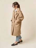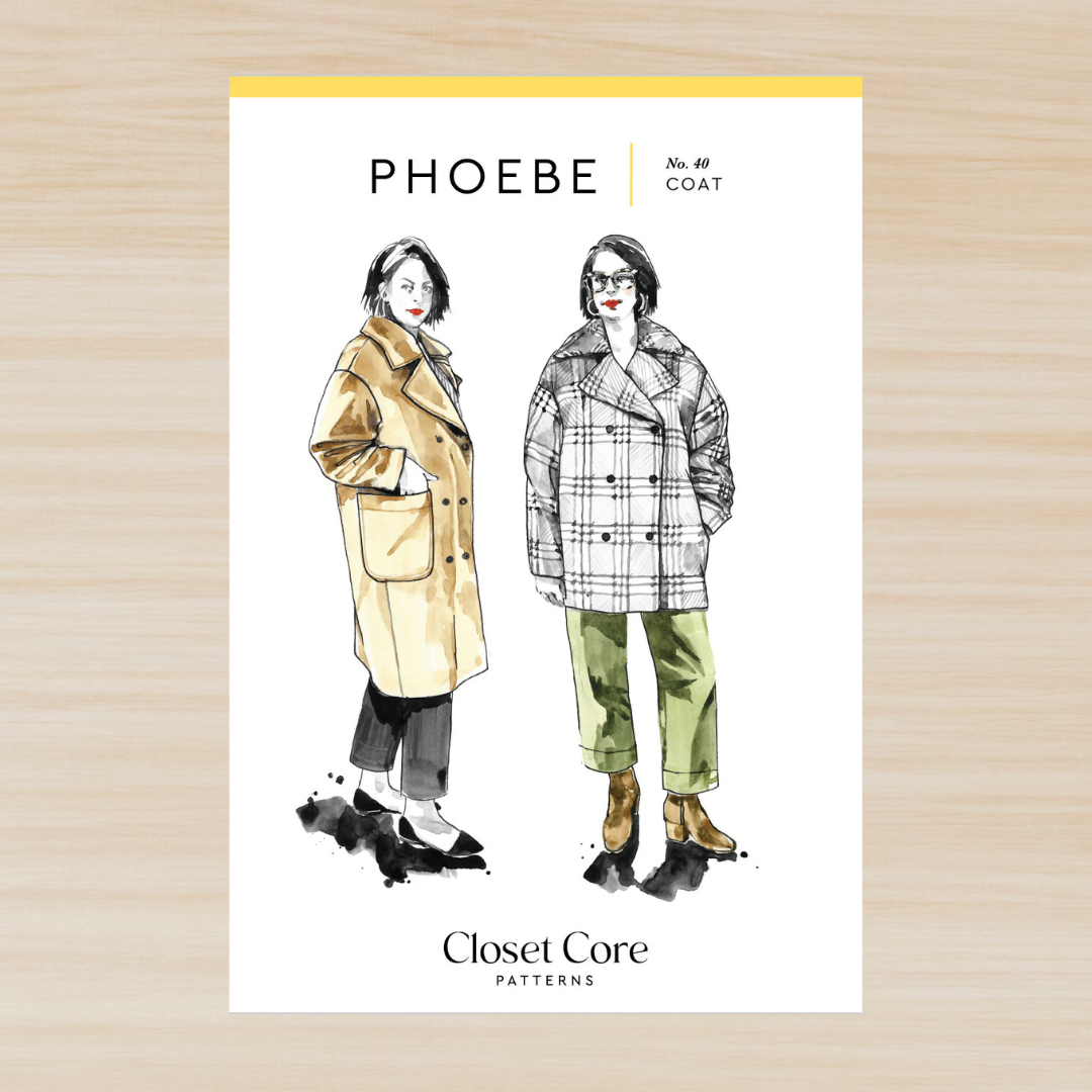 Modern yet timeless, Phoebe is a double-breasted coat with a cocoon shape. Fully lined, it features a dramatic notched collar and lapel that can also be worn closed to stop drafts. The dropped shoulder, roomy two-piece sleeve, and oversized fit make this coat ideal for layering over bulky winter layers. Destined to keep you warm on the coldest of days, this pattern is a great introduction to sewing tailored garments.