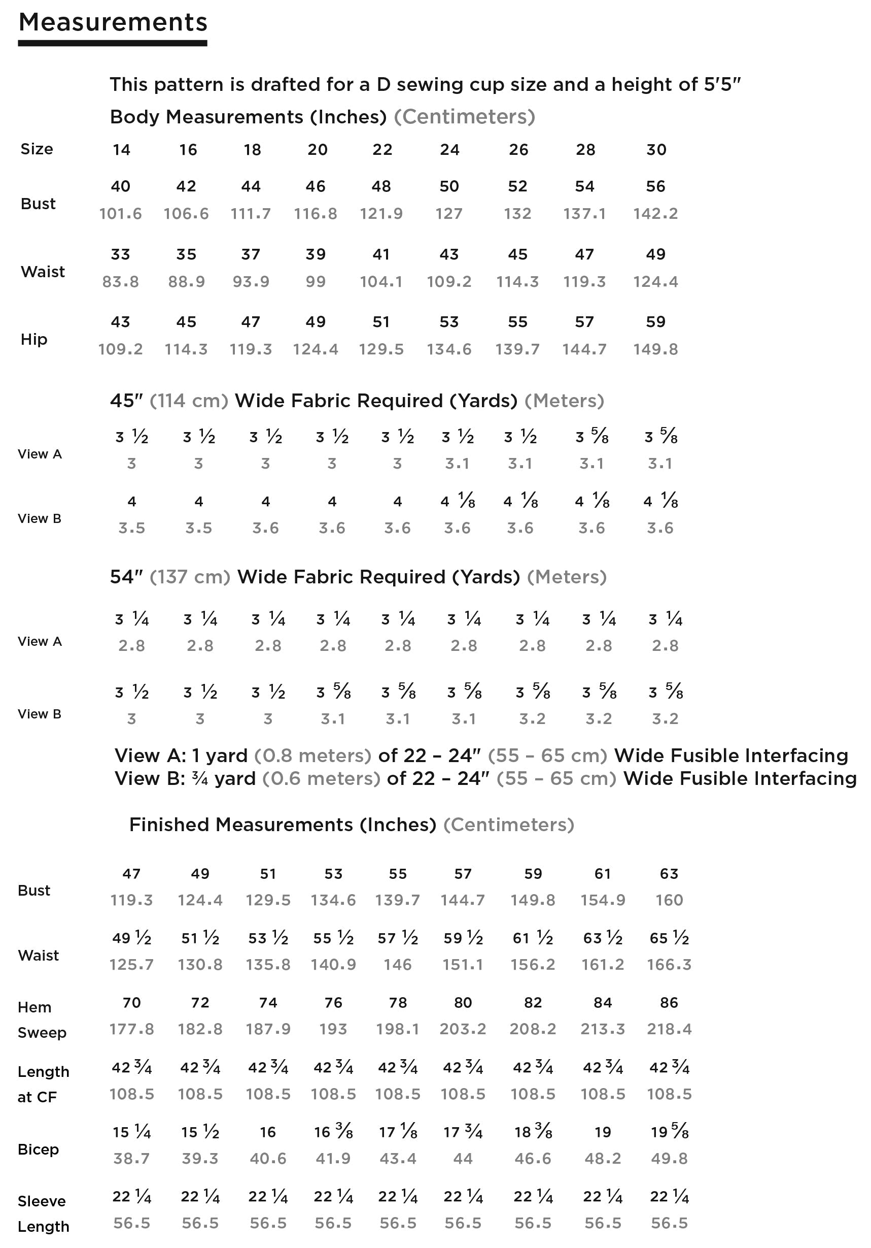 Light to medium weight fabrics ranging from linen, linen blends, cotton, lightweight wool and wool blends, silk charmeuse, and silk twill. Extra fabric may be needed to match plaids, stripes, or one-way design prints.