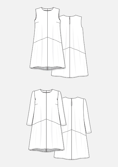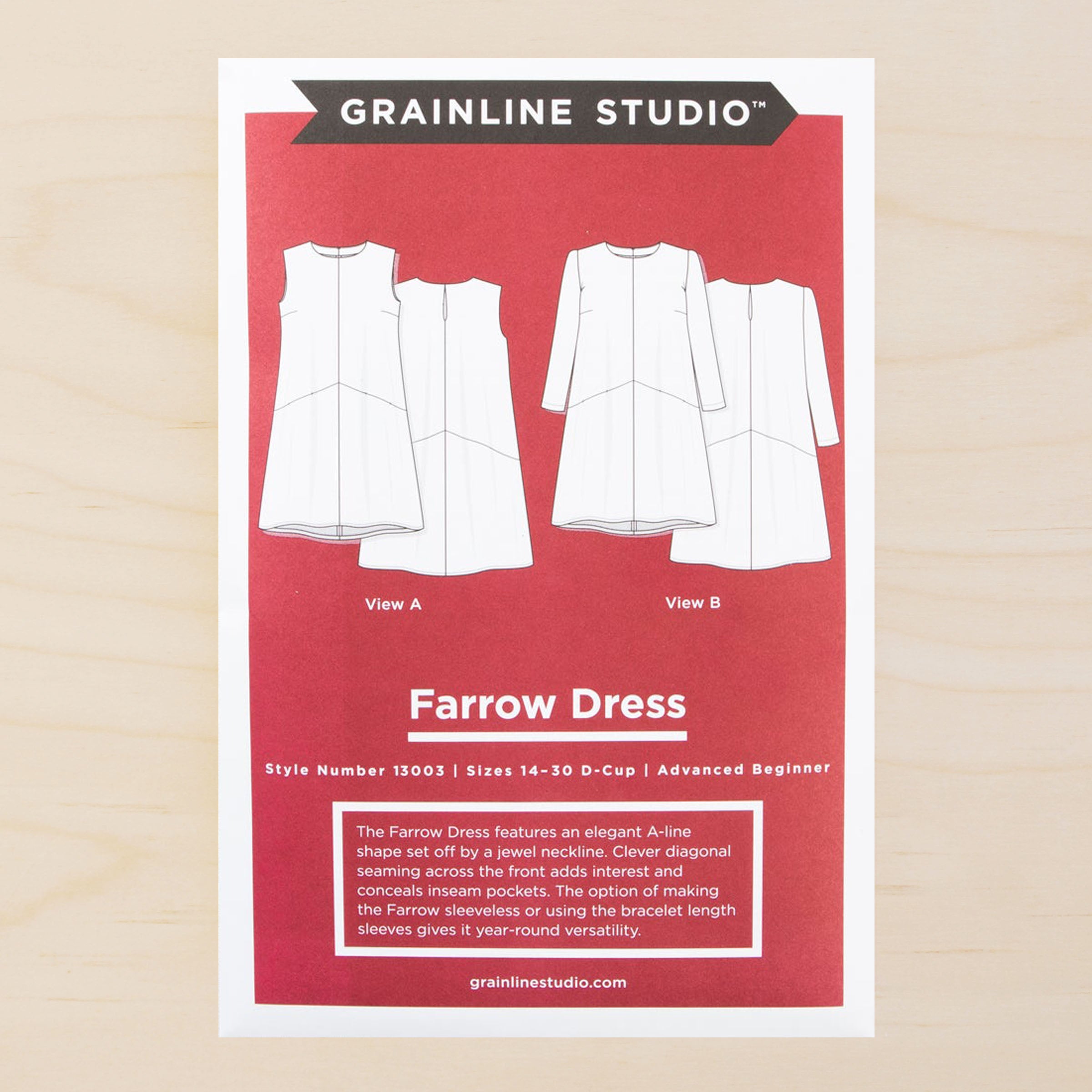 The Farrow features an elegant A-line shape with flattering diagonal seaming concealing inseam pockets, and a jewel neckline. Imagine wearing View A during the balmy days of summer. View B features bracelet sleeves and is the perfect option for cooler temperatures in the spring and autumn. Layer it with tights and a Driftless Cardigan for the snowy days of winter. Dress it up with heels and dress it down with boots.