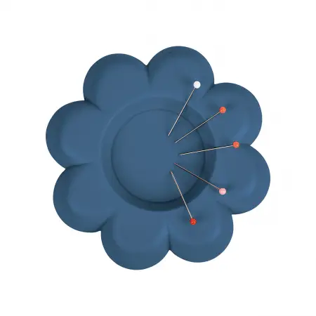 The Flower Power Magnet Pin Holder by Lori Holt of Bee in my Bonnet features a vintage flower design in Lori's denim color. This durable plastic pin holder has a super strong magnet and works great with Lori's Pretty Pins. Approximate size is 4" x 1 3/4".