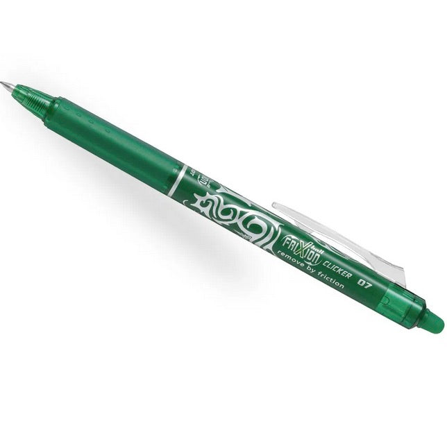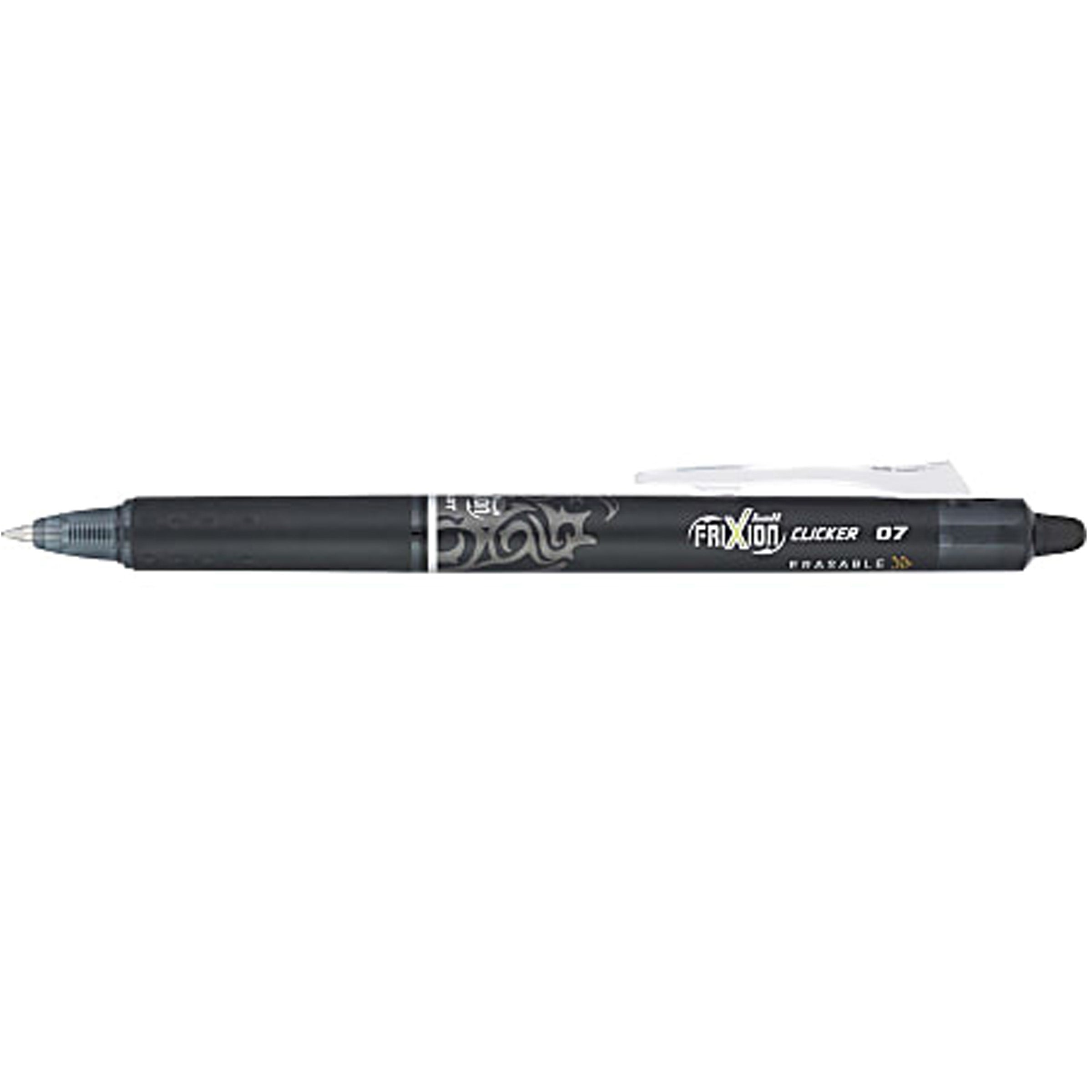 Frixion Clicker pen combines the convenience of a retractable pen with the incredible, erasable FriXion gel ink! Great for marking patterns and lines. Write and erase repeatedly, no wear or tear. Pens are refillable. Fine point 0.7mm. Writes Smooth, Erases Clean.