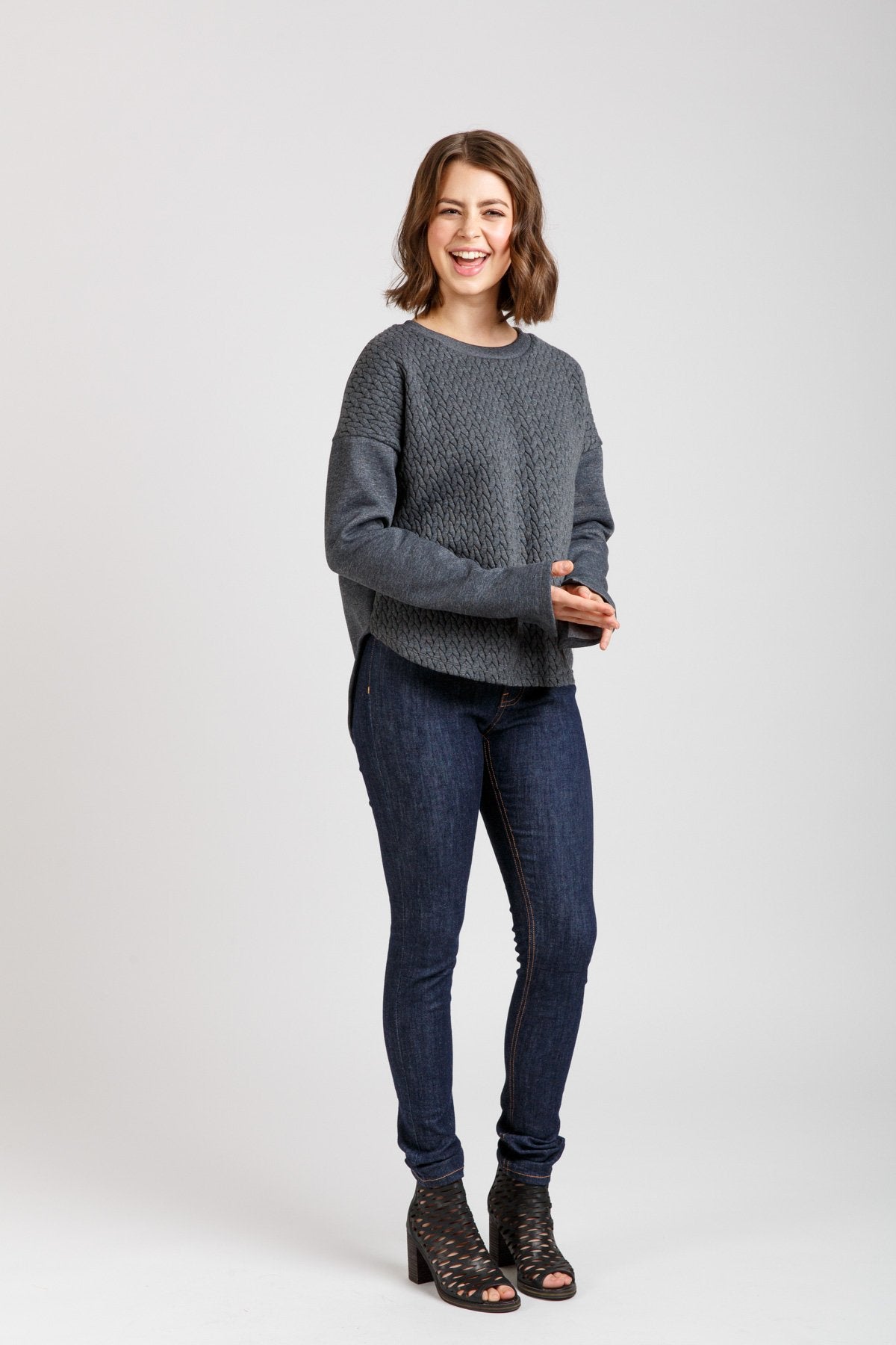 This one is a favourite of Fabrications Ottawa staff! The Jarrah is a loose fit drop shoulder sweater. Pattern features a crew or funnel neckline, two sleeve options and four hem styles.