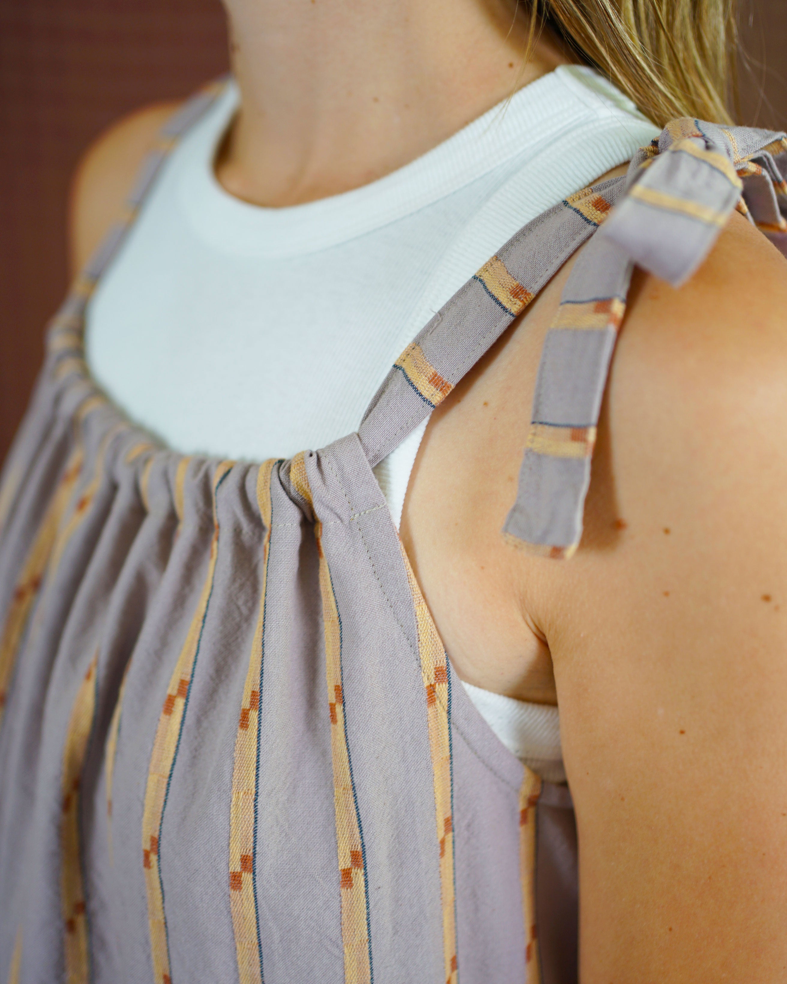 With all Matchy Matchy sewing patterns, we've designed the Cabana Tie Playsuit to have simple shapes and easy construction to take the overwhelm out of sewing and to help you find the joy of discovery.