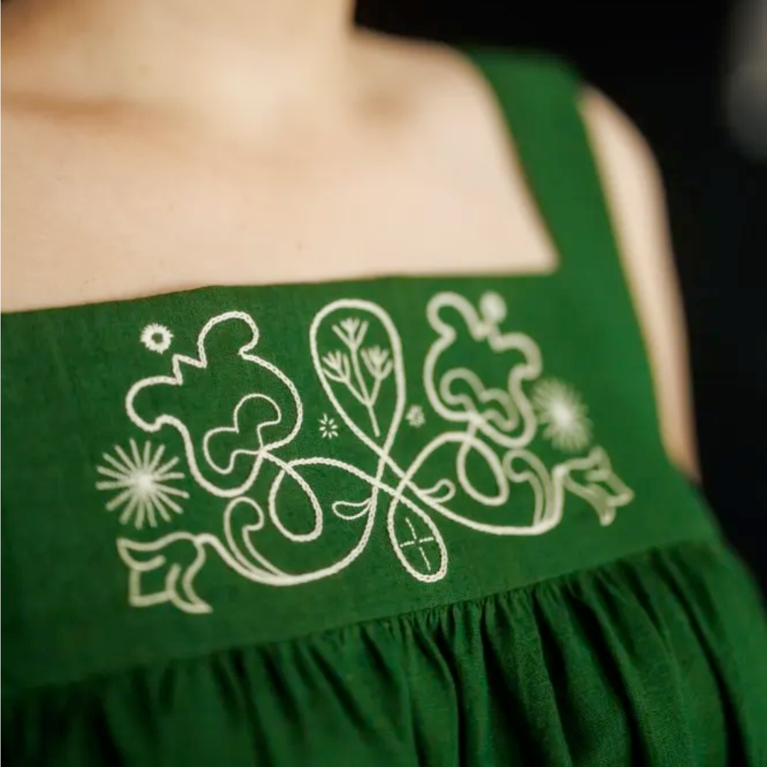 The embroidery design for the centre panel is an additional PDF pattern. The design is by Evie May Adams, and the embroidery for this sample was beautifully stitched by Becky Hogg.