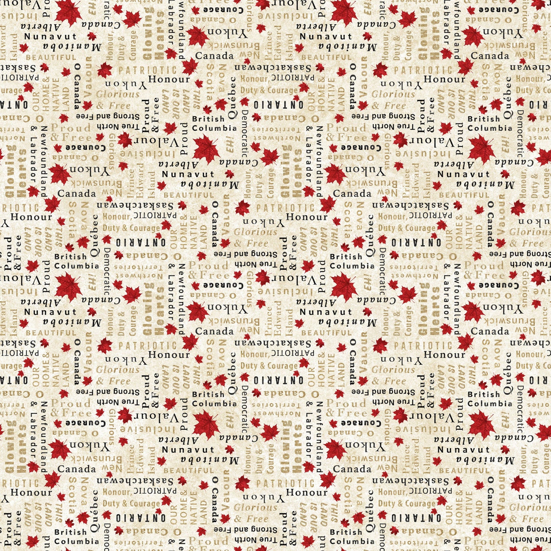 Northcott Oh Canada 14 - Stonehenge - Words in Beige and Red