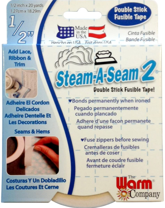 Warm Company Lite Steam A Seam 2 double stick fusible web tape. Pressure sensitive on both sides for a temporary hold to both the applique and background materials: pieces stay in place and are repositionable until fused with an iron. Once fused, the bond is permanent and machine washable and dryable. Lite is made especially for sheer and light weight fabrics and regular for use with heavier fabric, paper, cardboard, wood and glass beads. Quickly create hems, seams and applique. Easily apply lace, trim and ribbon.